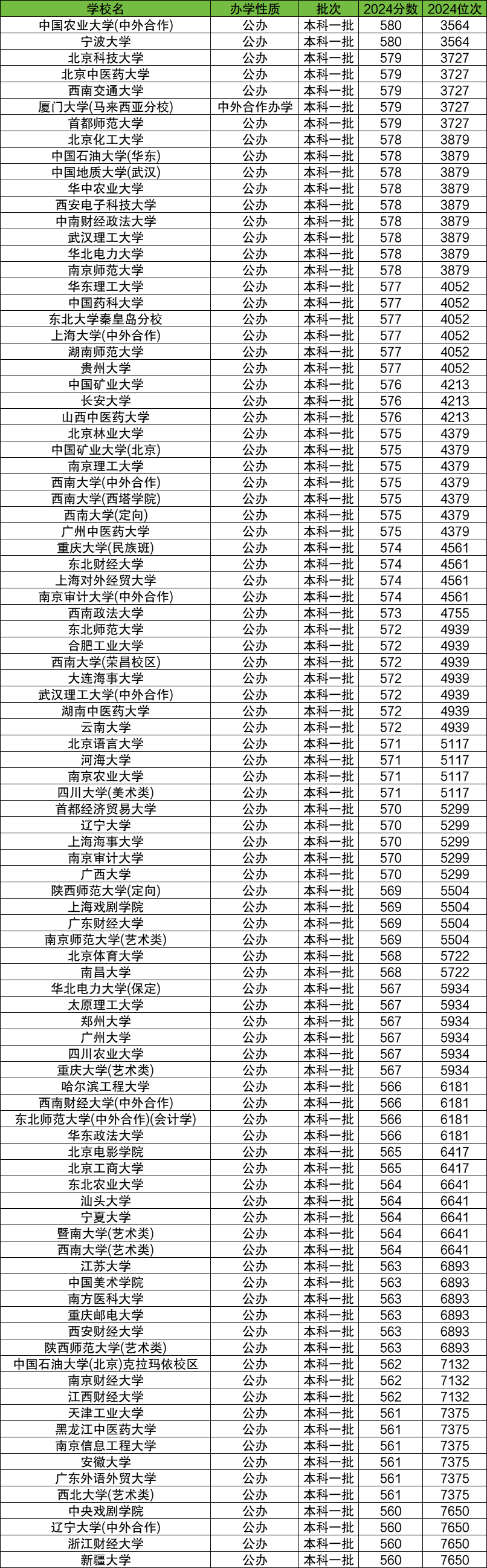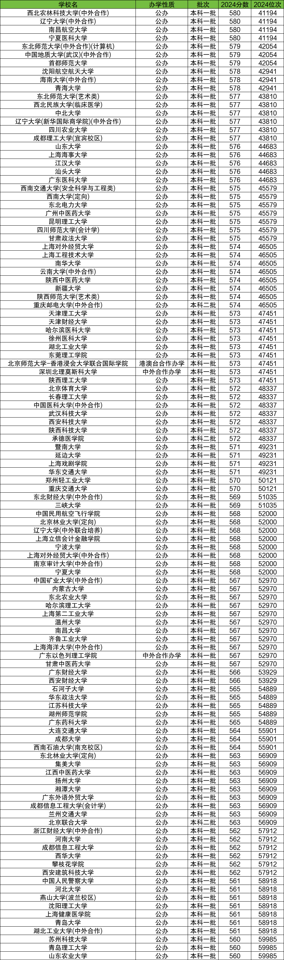 当然这只是老师参考四川省2024年高考录取数据整理的,每个地区560到580分能上的大学并不相同,还需要具体分析。