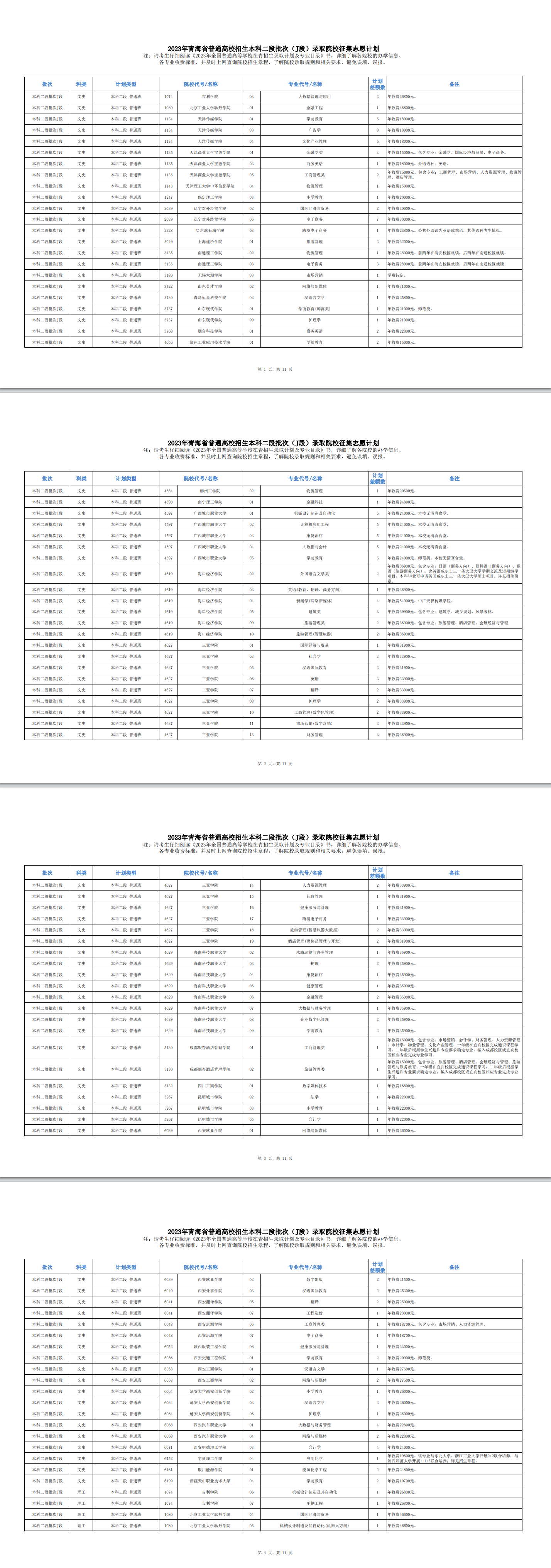 青海省2023年普通高校招生本科二段批次(J段)录取院校征集志愿计划(可点击下载)
