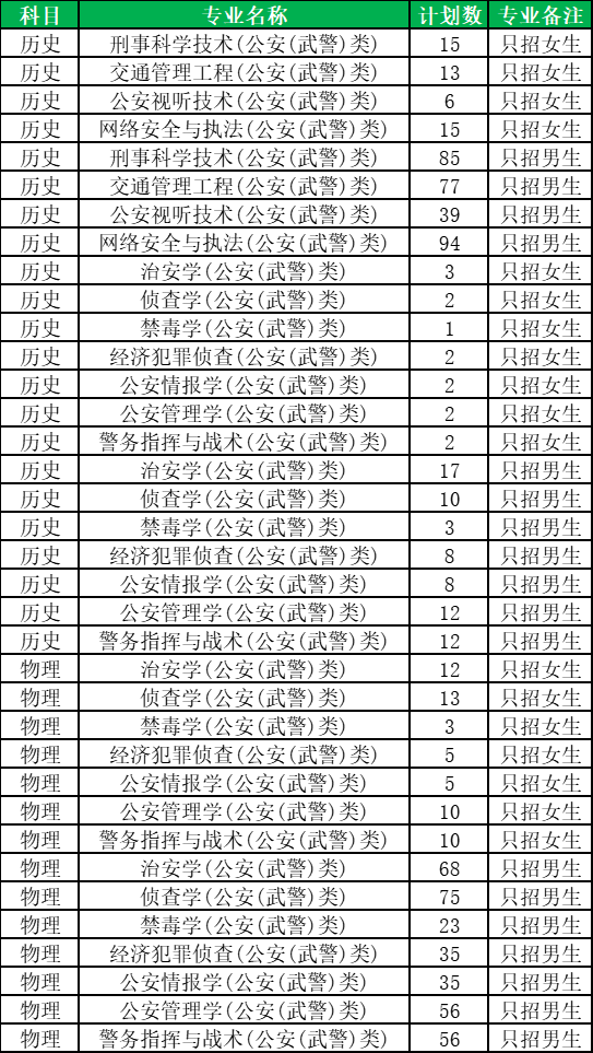 下面是山西警察学院2025年公安类专业普通招生计划详情: