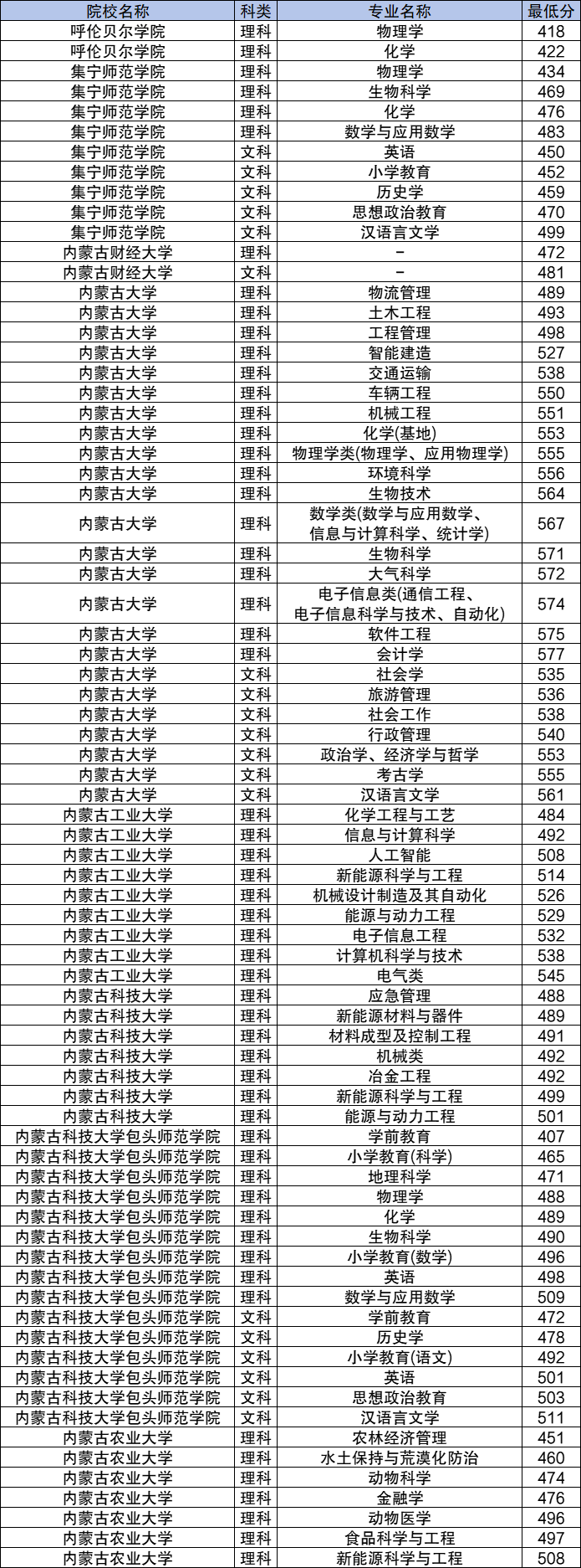 温馨提示:以下最低分数线均是针对内蒙古自治区而言。