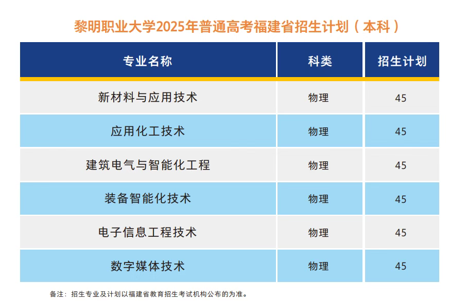 2025年黎明职业大学由专科层次升格为本科院校。参考2025年招生简章,本科共计招生270人,招生专业有新材料与应用技术、应用化工技术、建筑电气与智能化工程等,2025年本科批在省内录取分数为物理类最低494分。