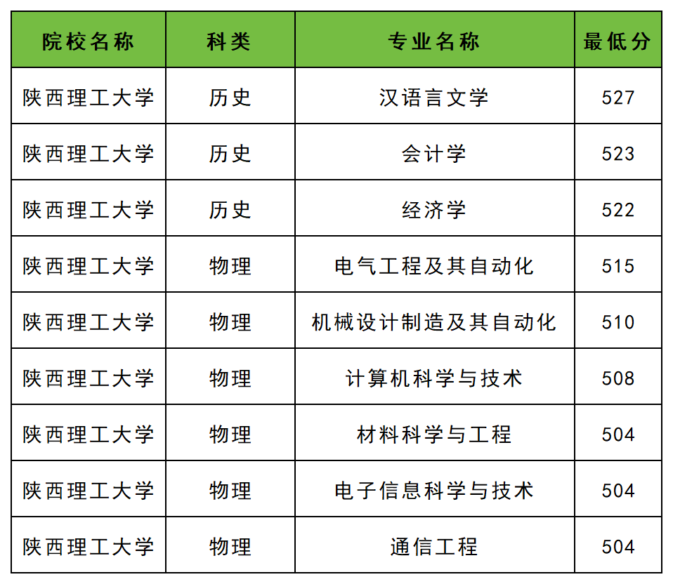 2025年陕西理工大学地方专项物理类录取分数线位于504分到515分之间,历史类录取分数位于522分到527分之间。