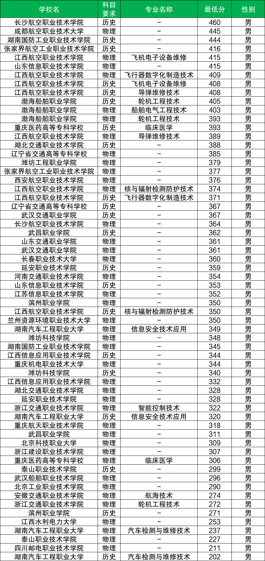 辽宁2025年定向培养军士历史类公布的投档线在202分-460分之间,考生最低需超专科线52分(即202分)以上才有机会能被录取,最低分院校是湖南汽车工程职业大学(汽车检测与维修技术)。而分数门槛最高的是长沙航空职业技术学院,2025年考生最低需460分才能报考,超专科线310分。