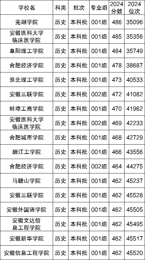 下面是2024年各安徽的民办本科大学在安徽省历史类的录取分数线(供参考):