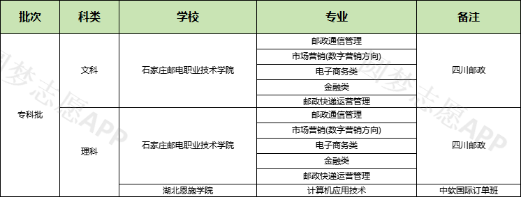 四川订单班院校专业包含石家庄邮电职业技术学院:邮政通信管理、市场营销(数字营销方向)、电子商务类等;湖北恩施学院:计算机应用技术。