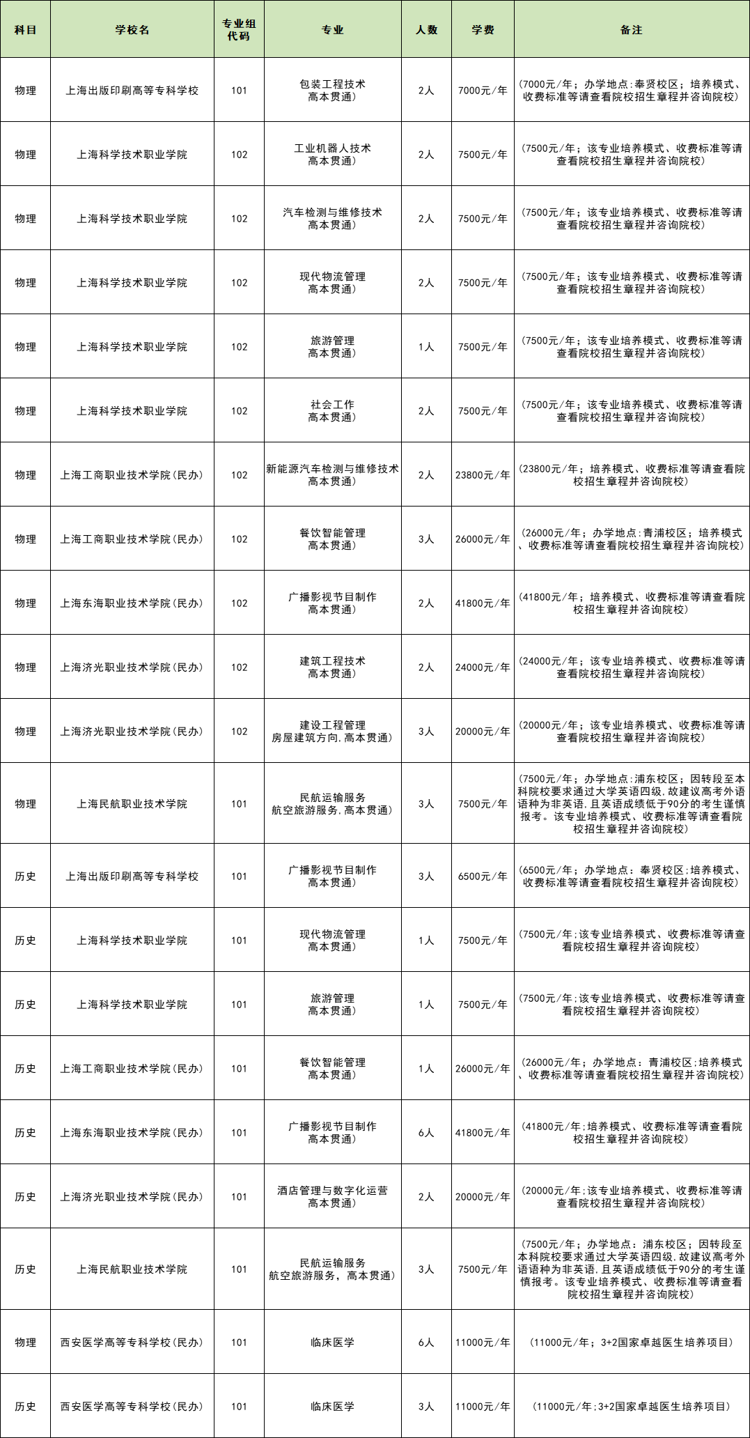 根据河南省2025年公布的招生计划,共有7所高职院校在河南开展专本贯通培养,包括上海出版印刷高等专科学校、上海东海职业技术学院(民办)、上海工商职业技术学院(民办)、上海济光职业技术学院(民办)、上海科学技术职业学院等。考生需通过高职阶段三年学习并考核合格,才能升入对应的本科院校再读两年,最终获得全日制本科学历。