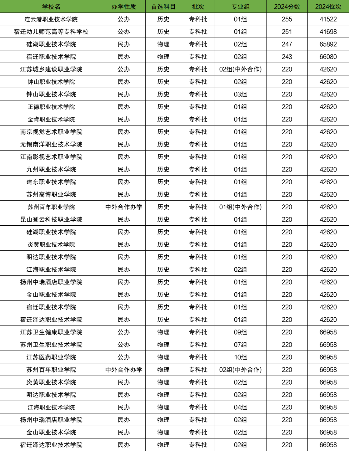 2024年江苏专科线为220分,260分考生选择空间不大。