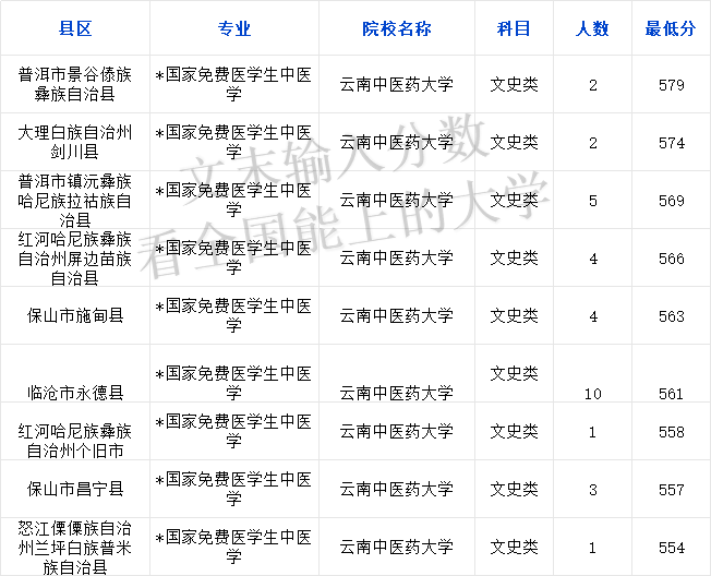 一、云南免费医学生文科分数