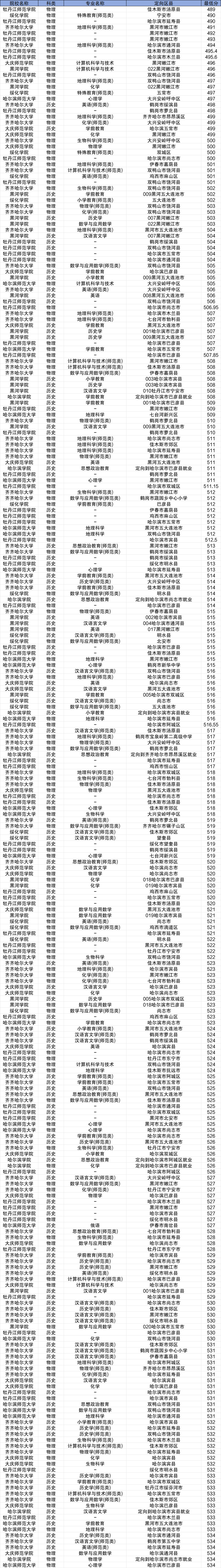 黑龙江地方公费师范生录取分数线完整版一览表(需滑动查阅):