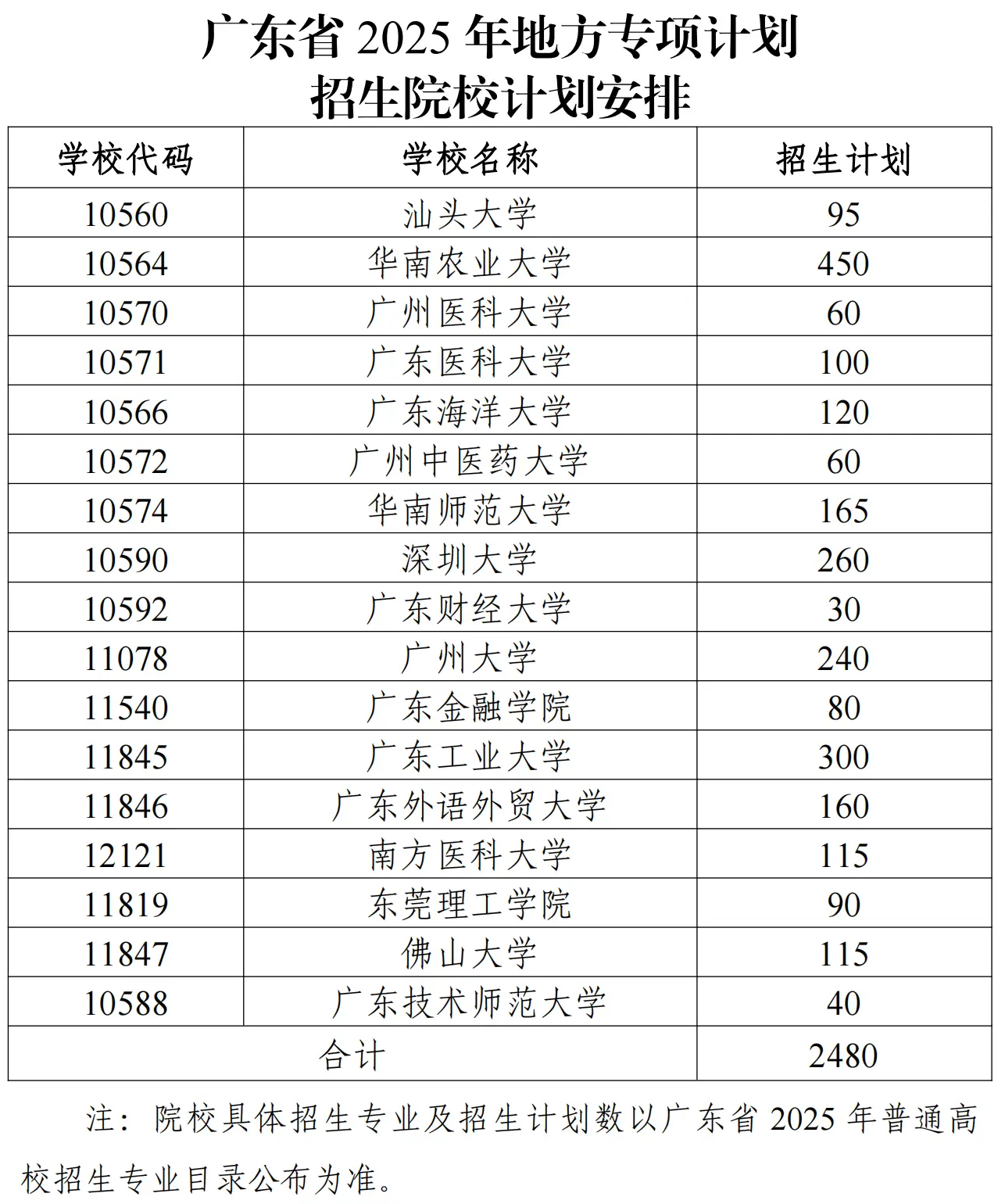 2026年广东地方专项计划招生院校共17所,包括华南农业大学、深圳大学、广州医科大学、华南师范大学等。