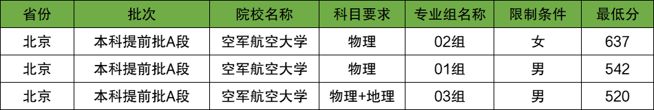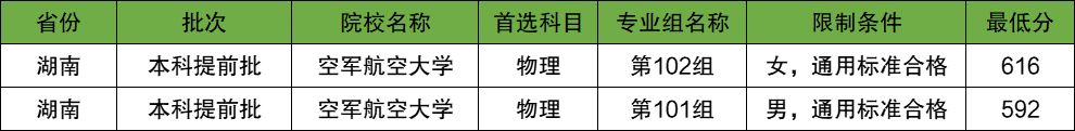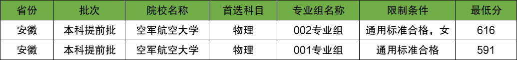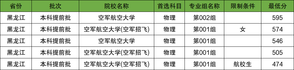首选物理:第002组最低分595分、第001组最低分474分(空军招飞,航校生)、第001组最低分546分、第001组女生最低分574分(空军招飞)。