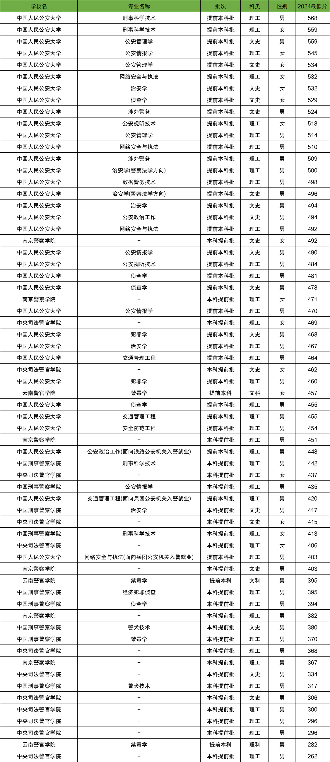 中央司法警官学院(男生):文科最低306分、理科最低262分。