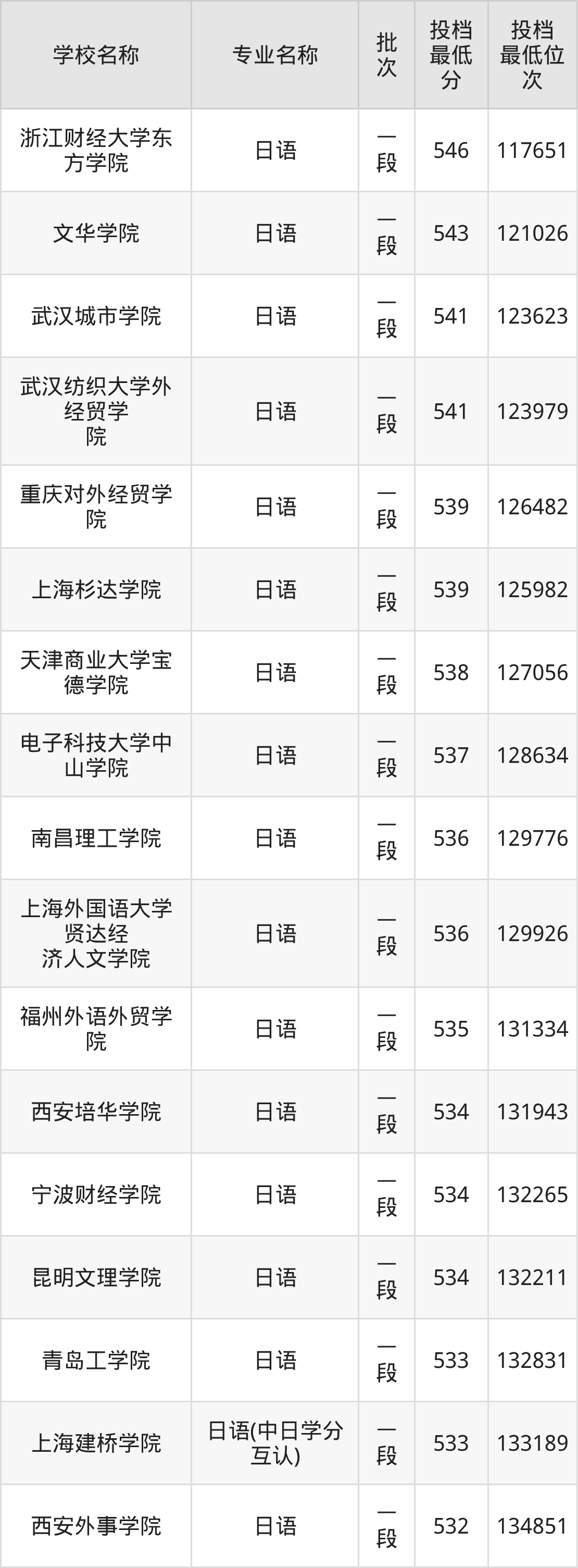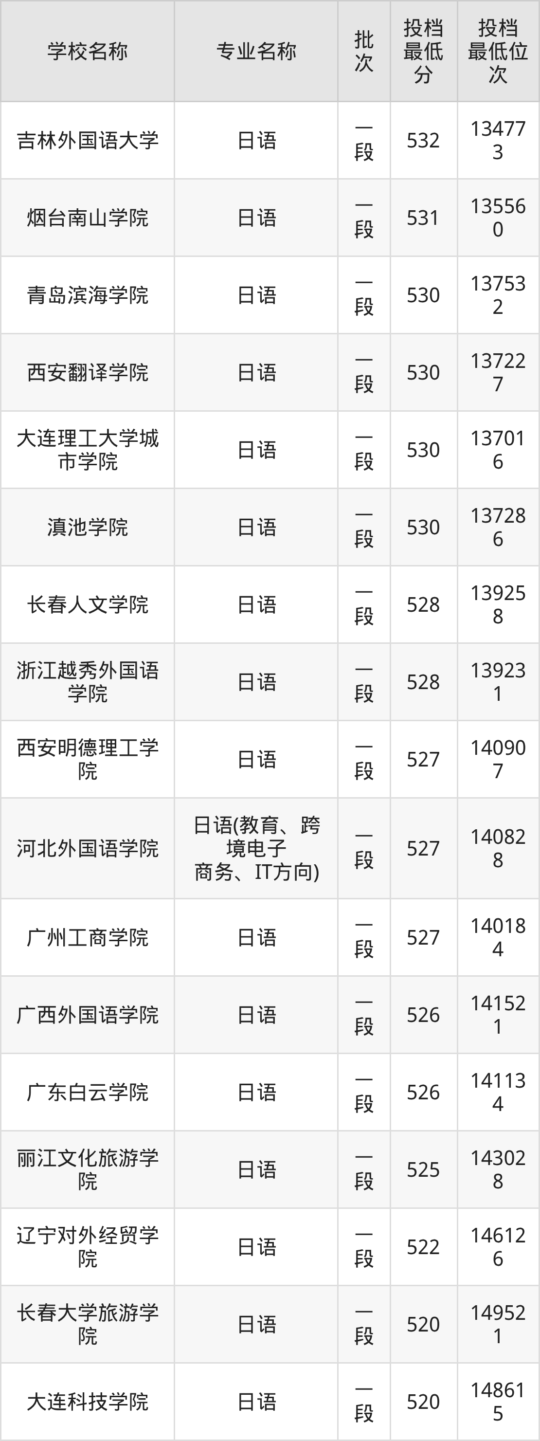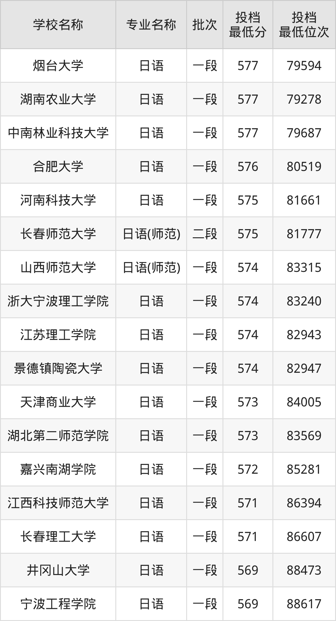 下面是2025年日语专业录取分数线一览表(139所大学汇总):