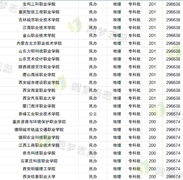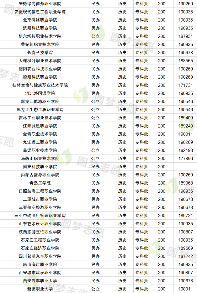以部分专科院校往年的分数线为例,方便大家了解不同层次的院校在专科批次的招生数据。
