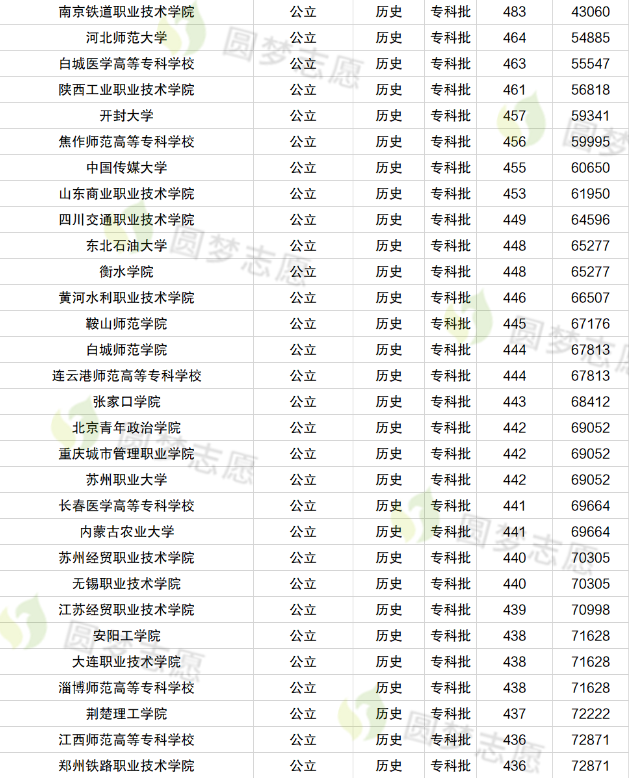 2. 各专科大学录取分数线专科(历史类)