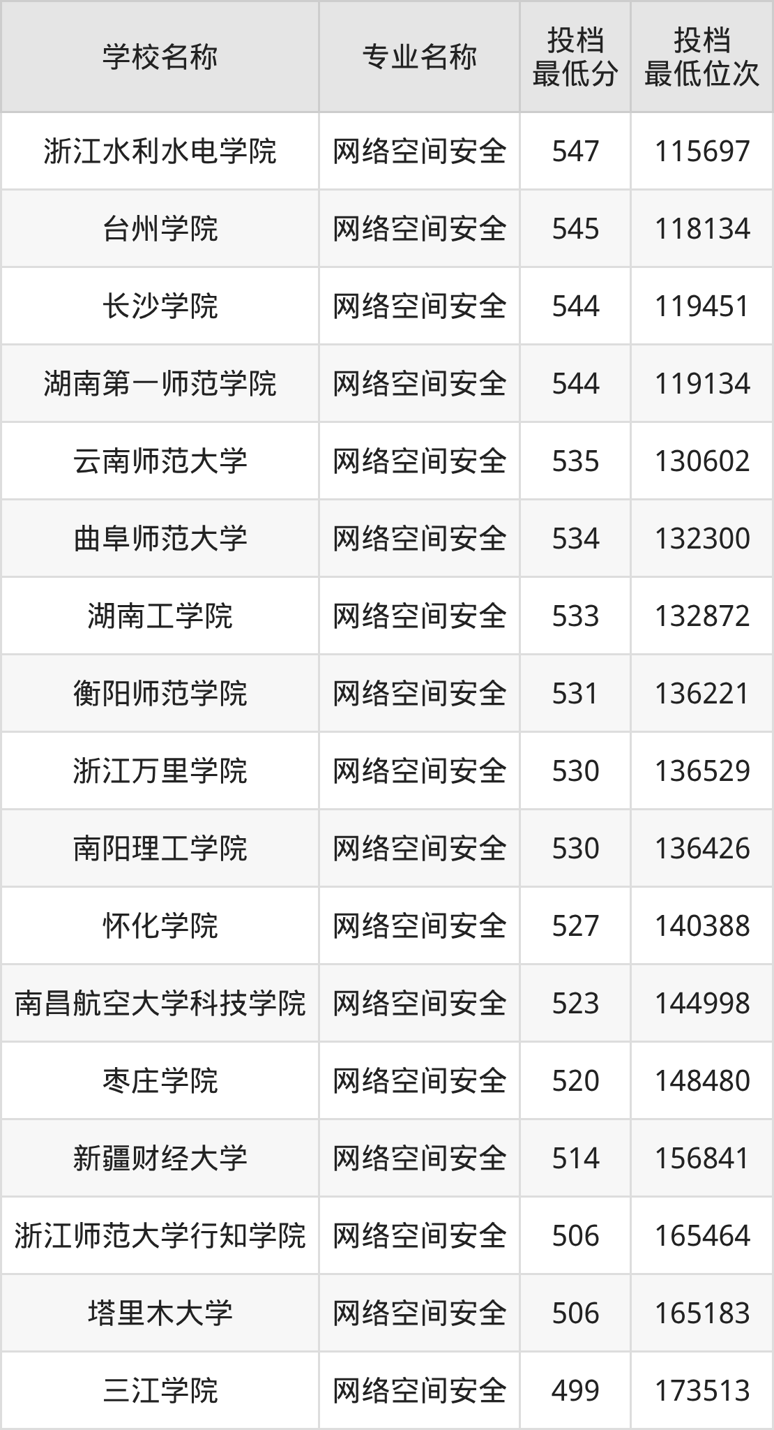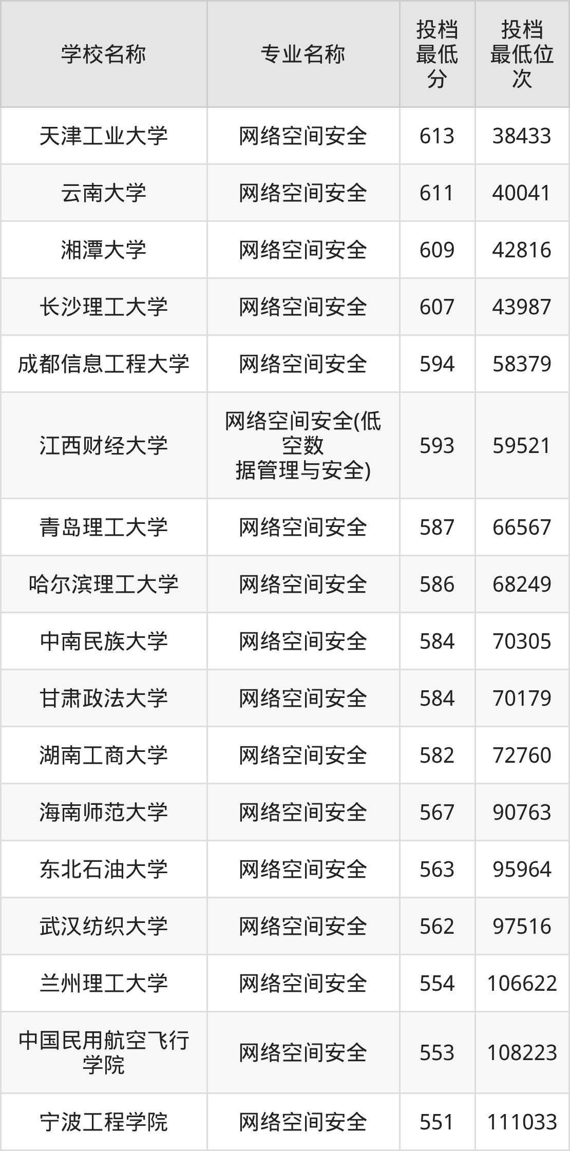 下面是2025年网络空间安全专业录取分数线一览表(51所大学汇总):