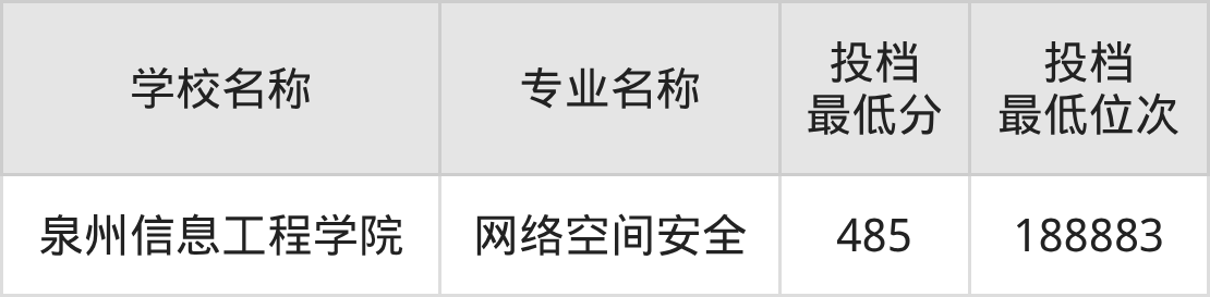 网络空间安全分数最低的本科学校是泉州信息工程学院,2025年最低分485分,低于本科线5分。收分最高的是北京航空航天大学,网络空间安全(卓越人才培养试验班)2025年最低分677分,对应全省排名是1975名,超本科线187分才能上。