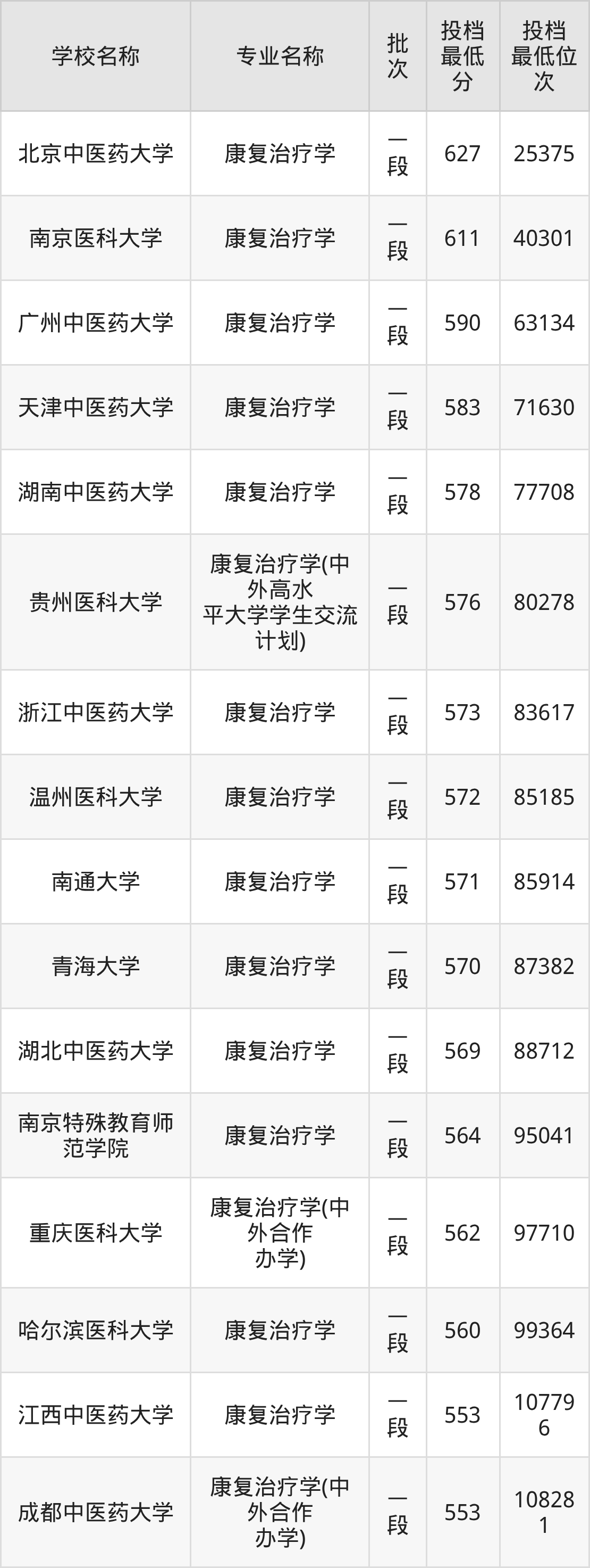 按照分数线从高到低排名,整理康复治疗学排名前十强名单如下: