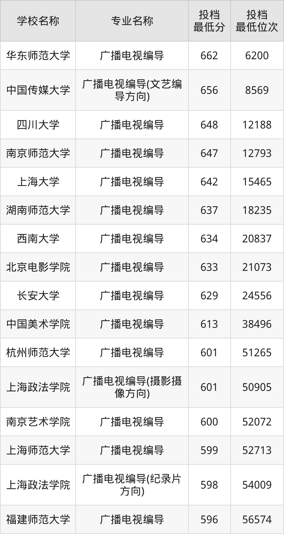 2、中国传媒大学:文艺编导方向,2025最低分656分;