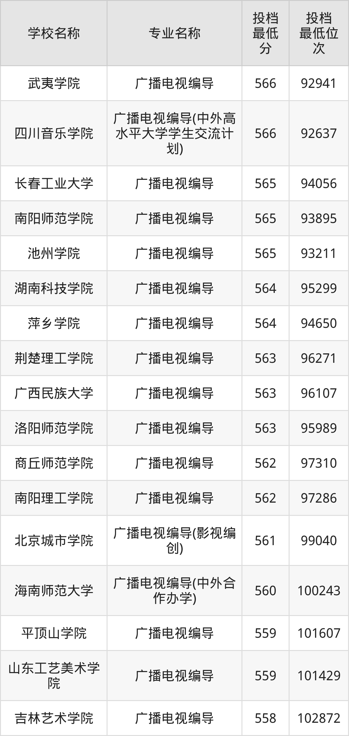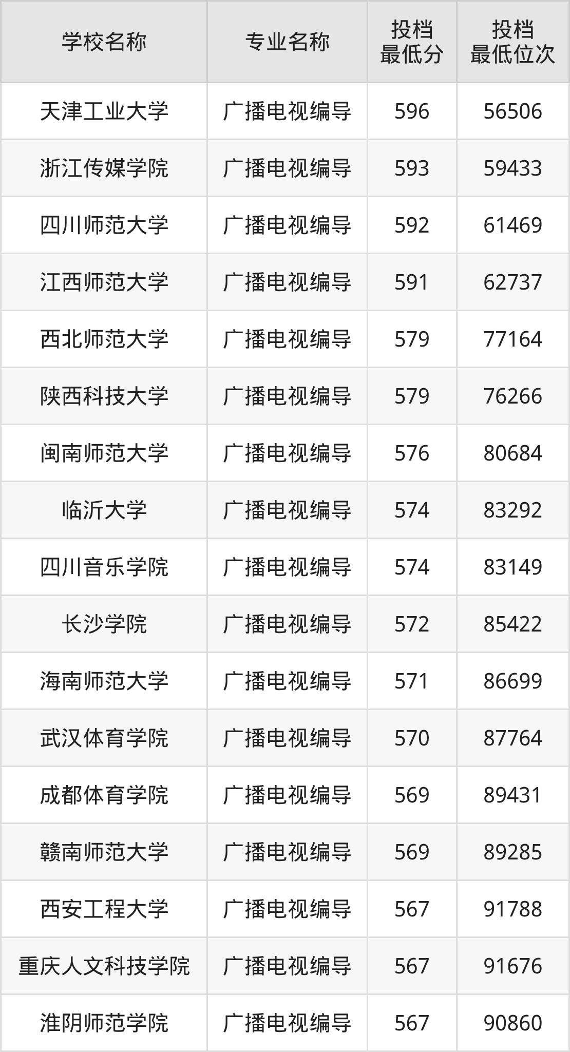 下面是2025年广播电视编导专业录取分数线一览表(86所大学汇总):