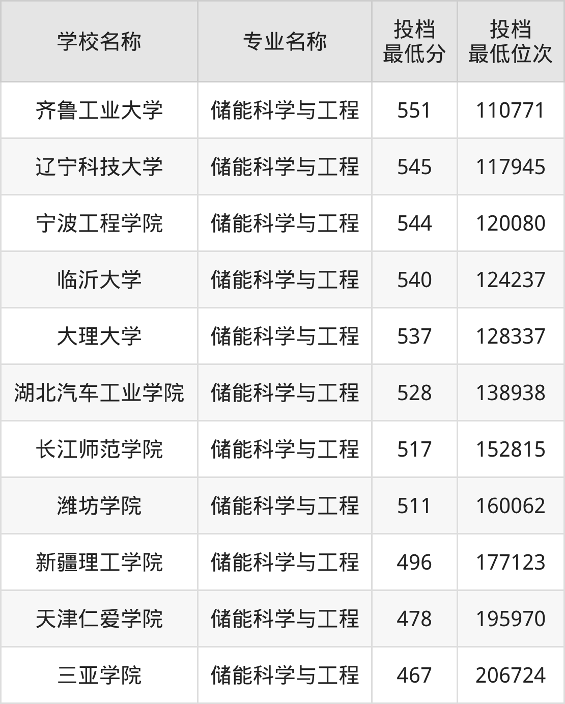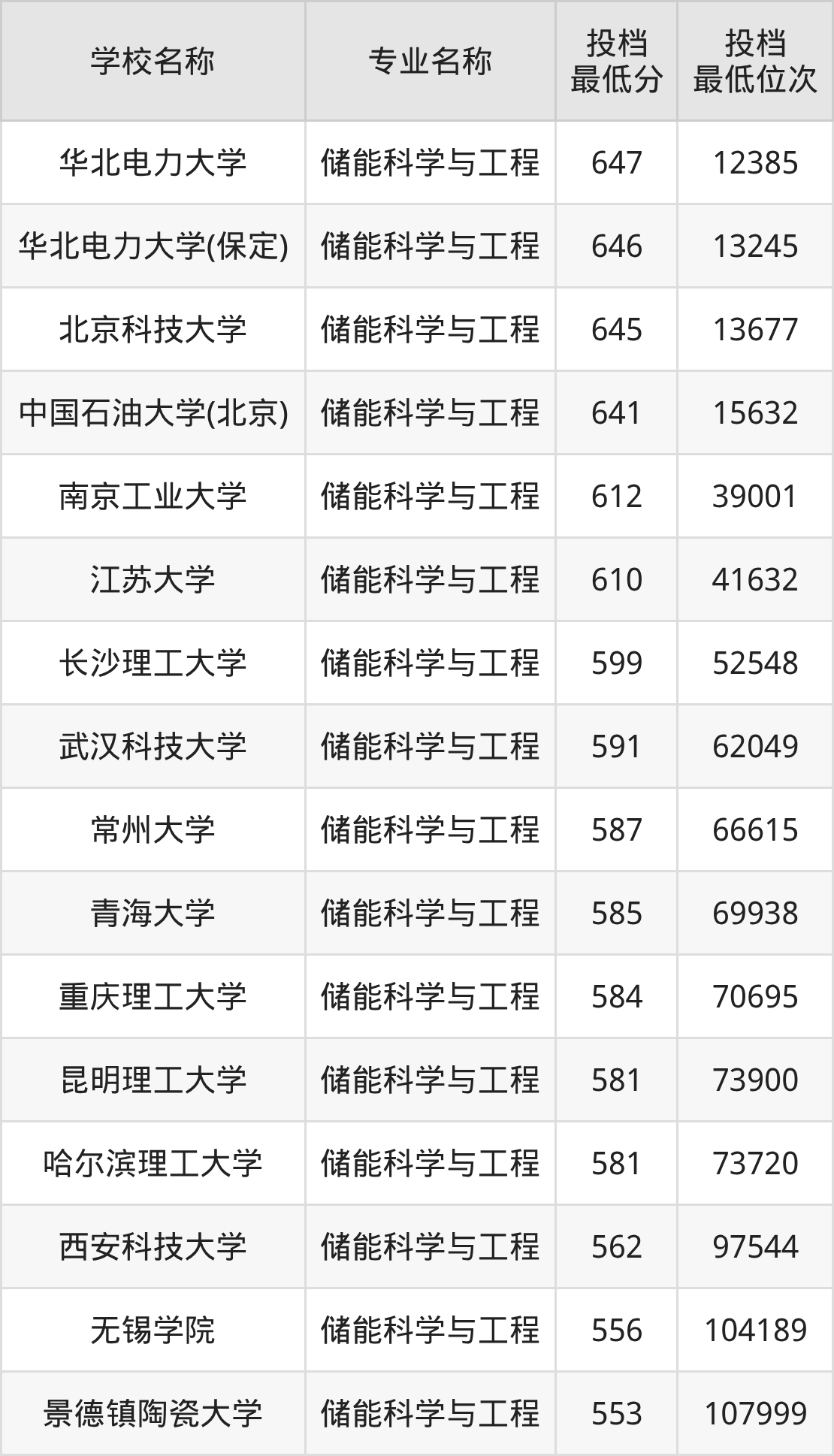 下面是2025年储能科学与工程专业录取分数线一览表(27所大学汇总):
