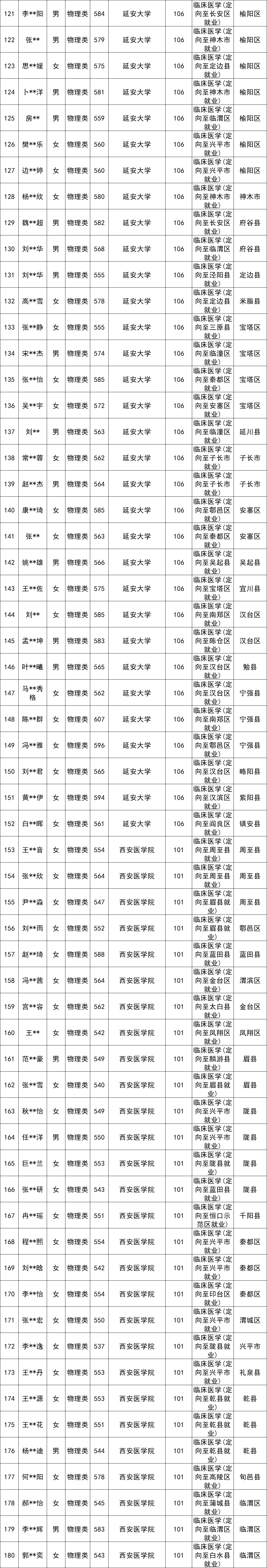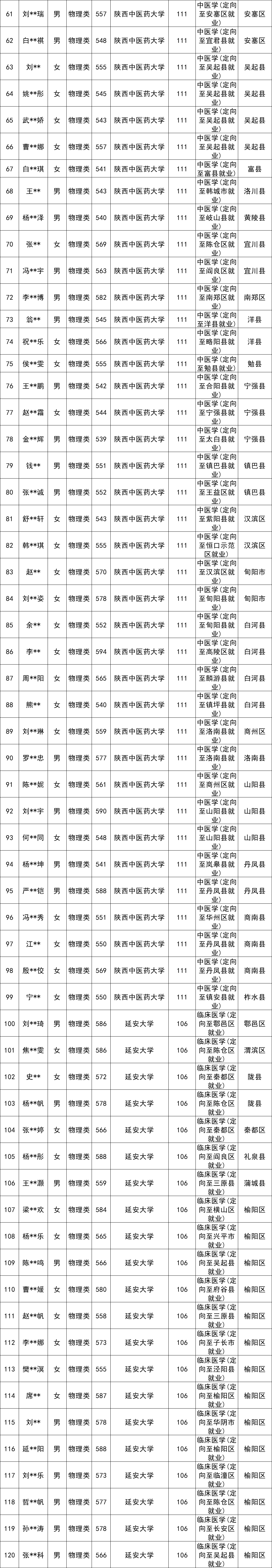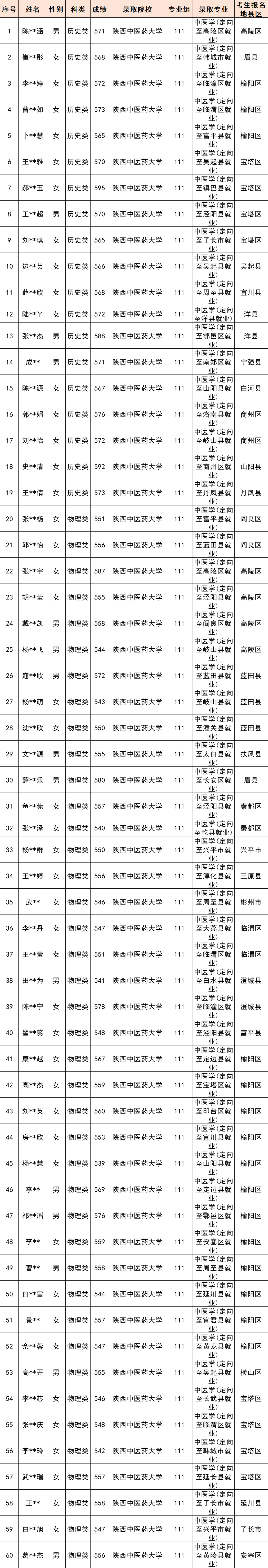 1、陕西中医药大学:定向医学物理类最低540分