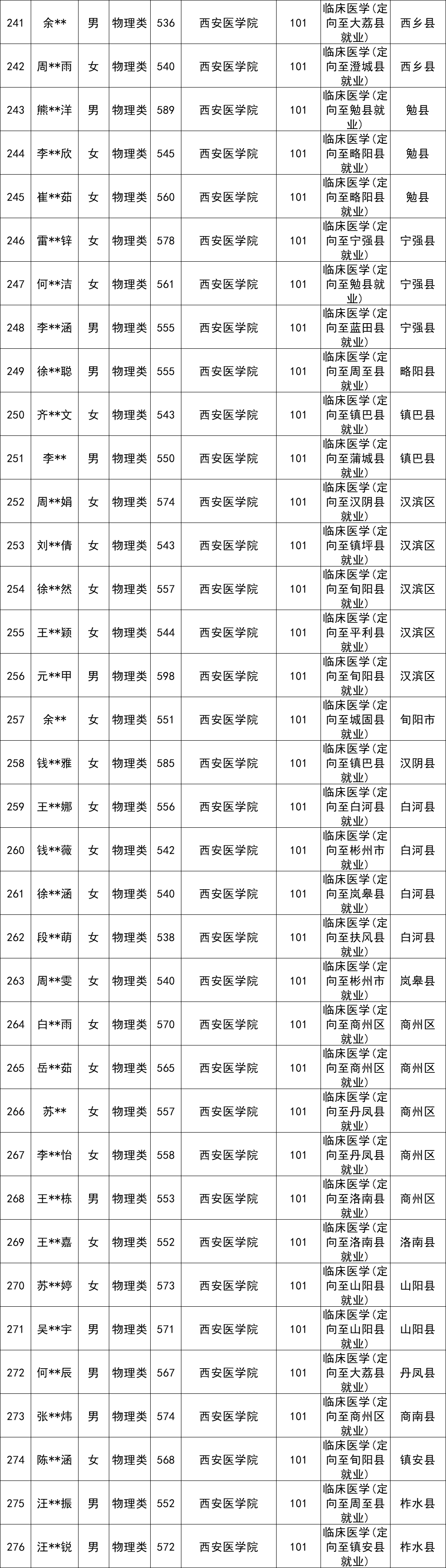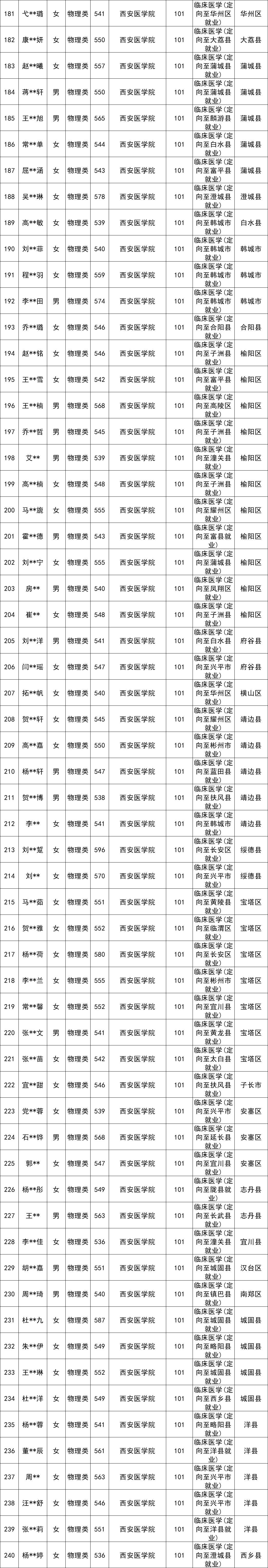 3、西安医学院:定向医学物理类最低538分