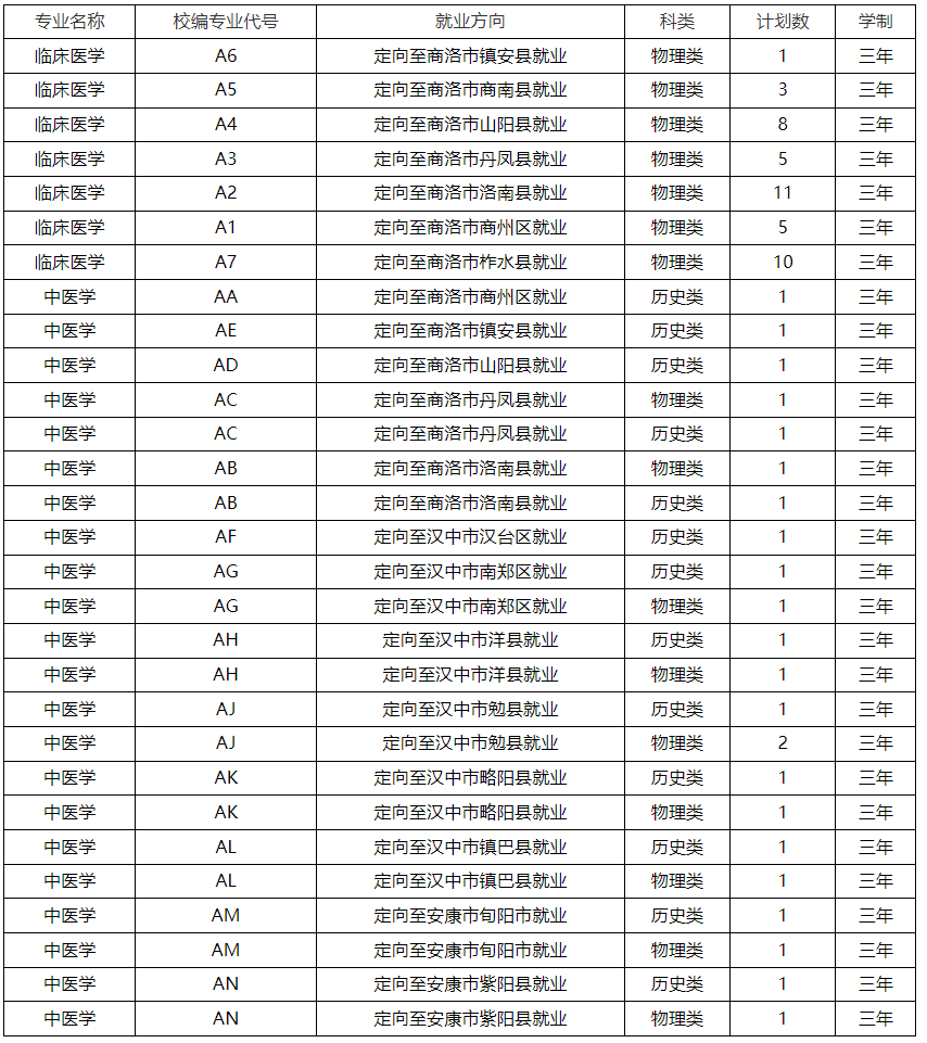 二、陕西定向免费医学生学校名单