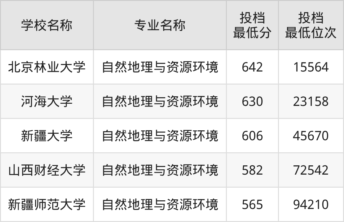 下面是2025年自然地理与资源环境专业录取分数线一览表(5所大学汇总):