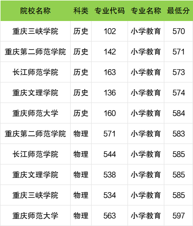 物理类录取分数范围在583分~597分之间,其中分数在590分以上的院校只有重庆师范大学(563组,597分),其余院校分数均在590分以下、570分以上。