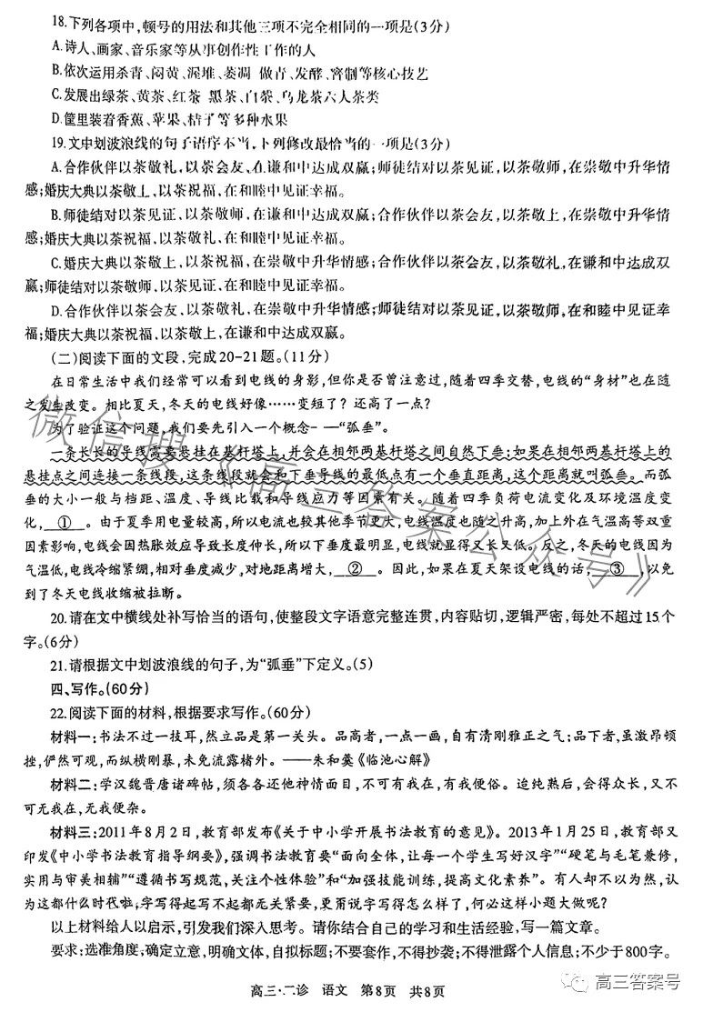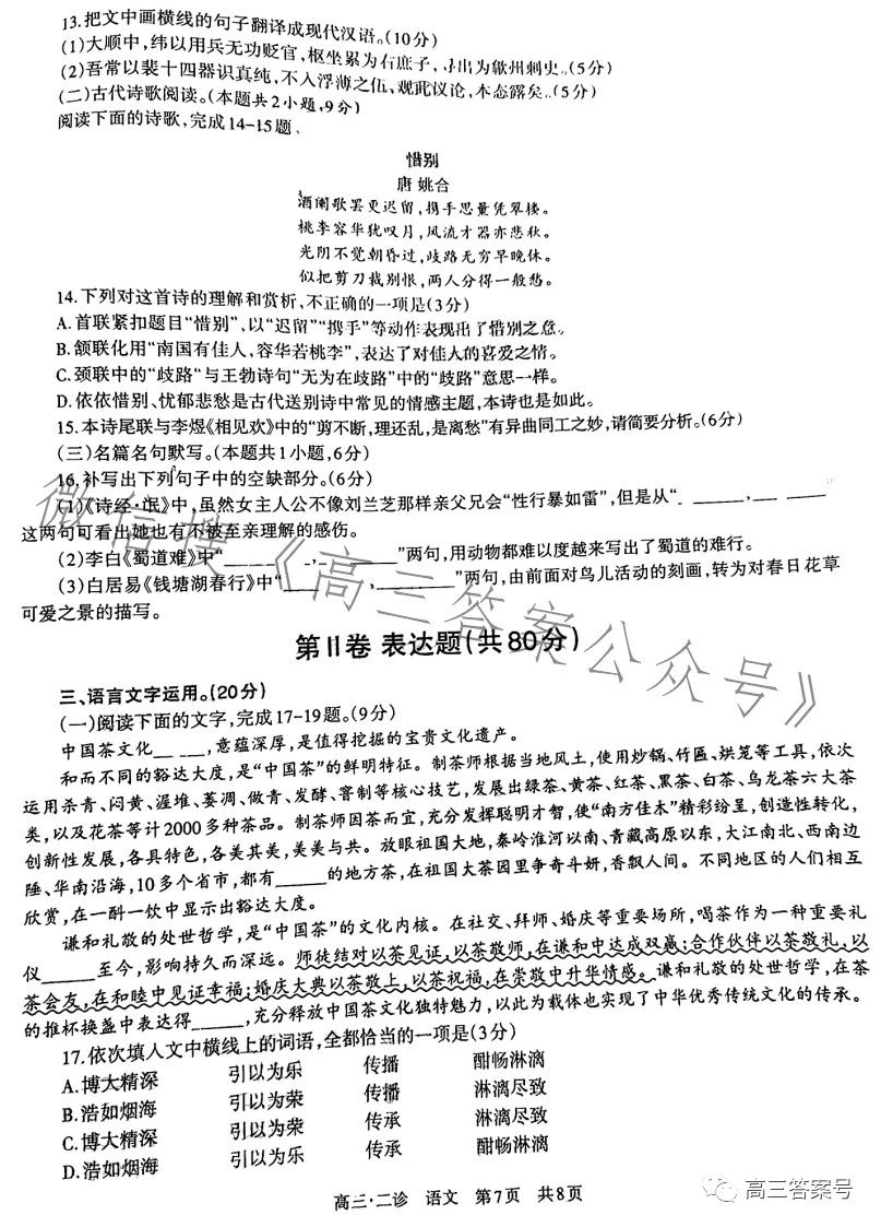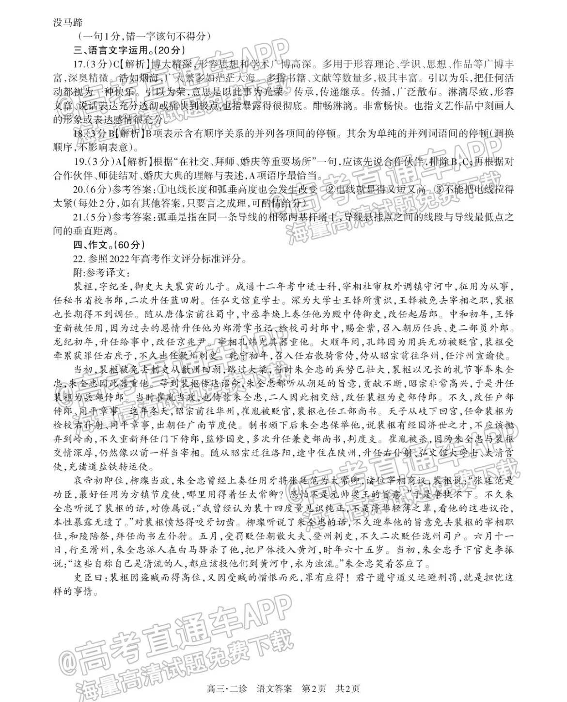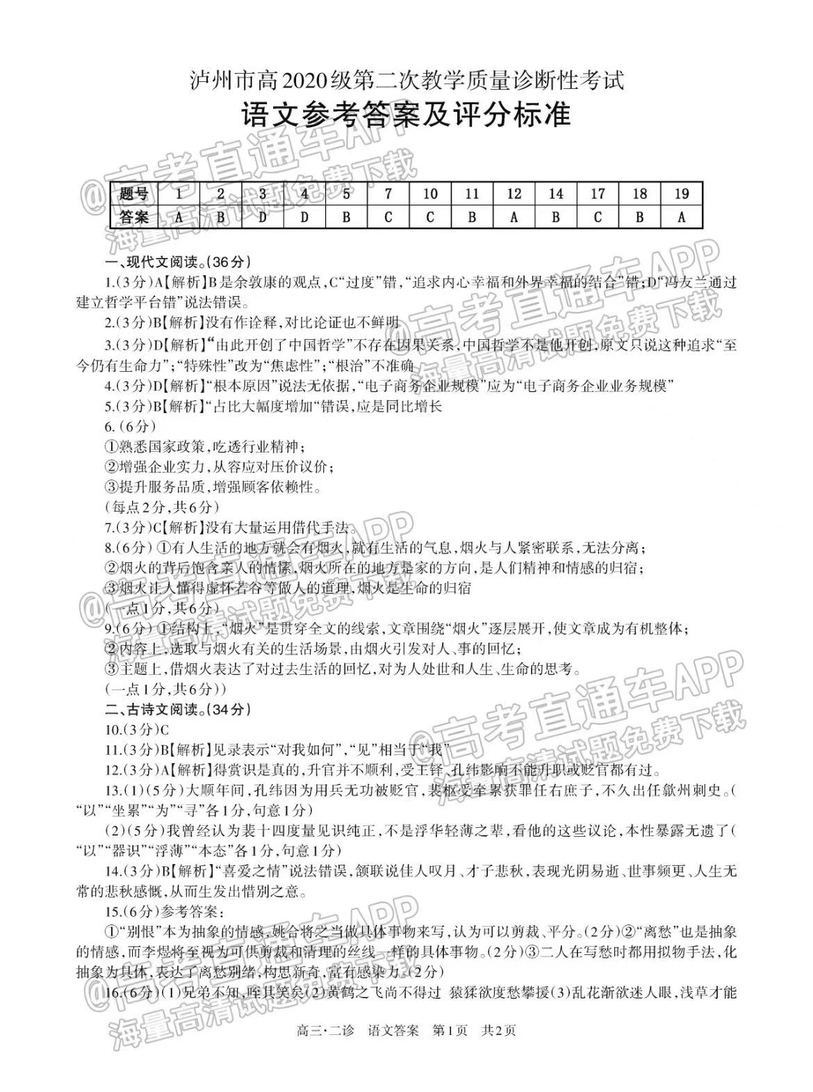 一、四川泸州二诊2023语文答案及试卷