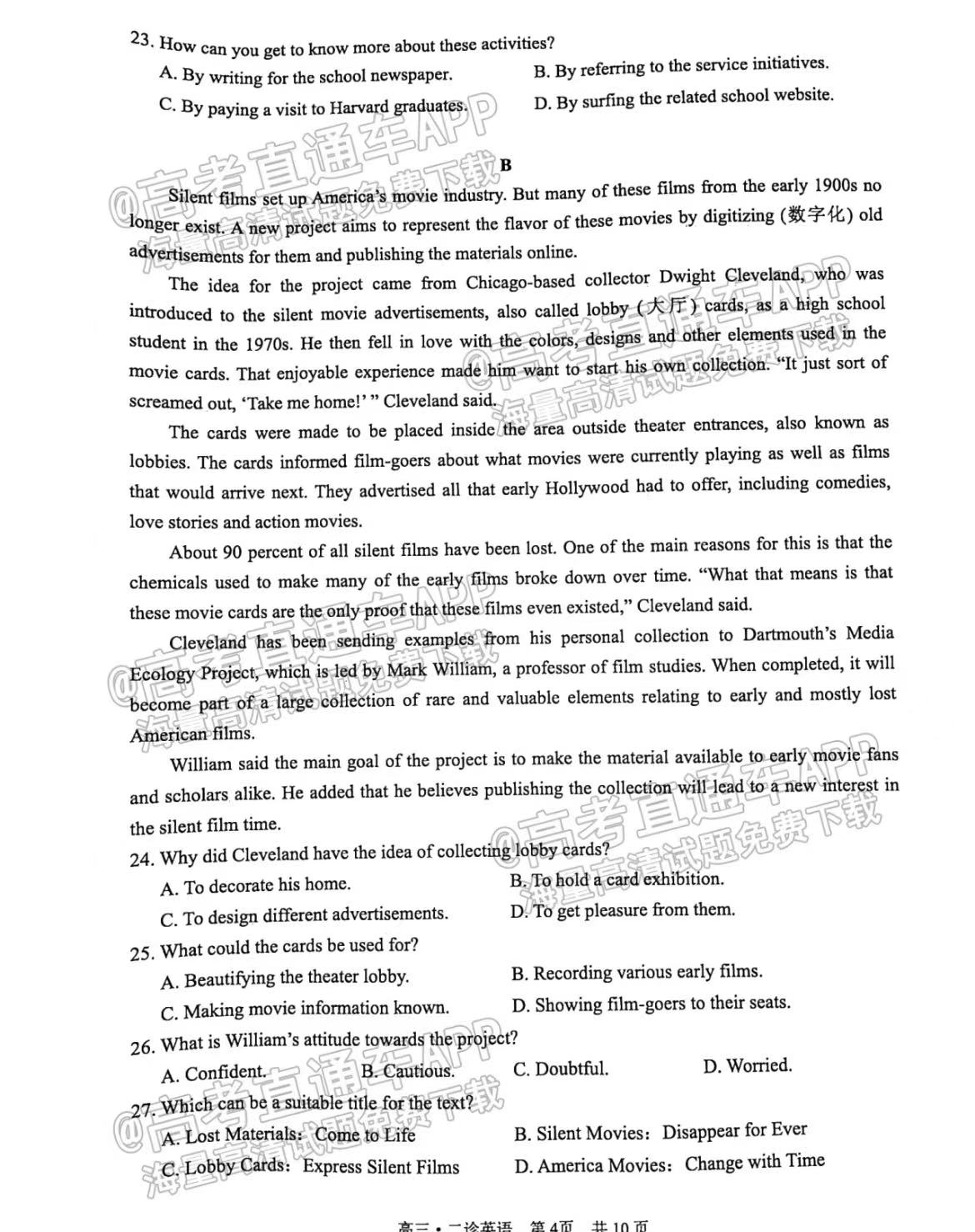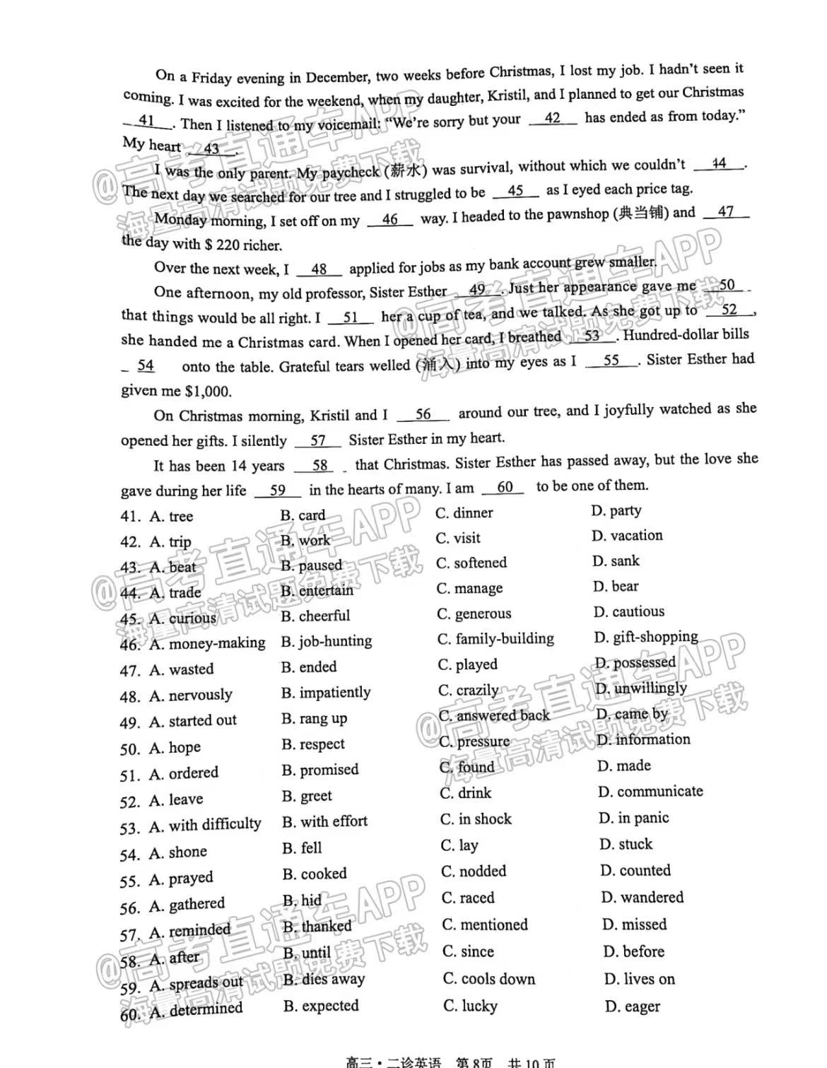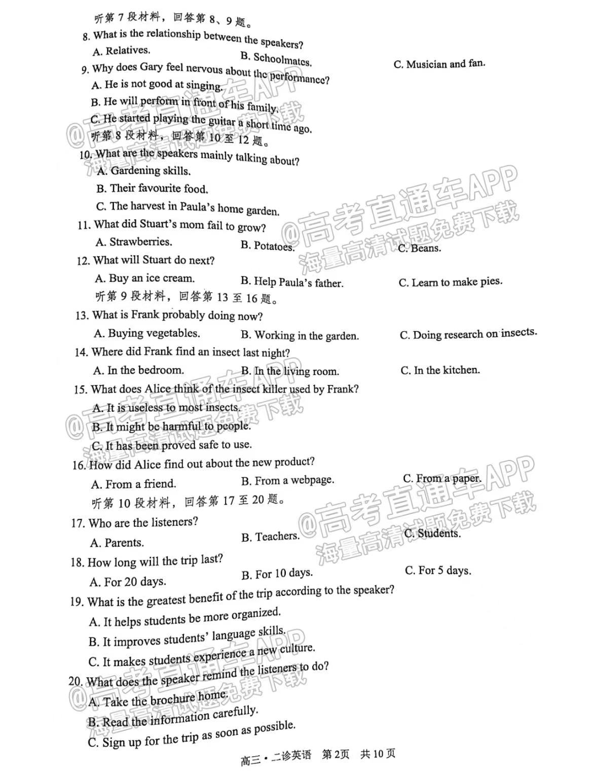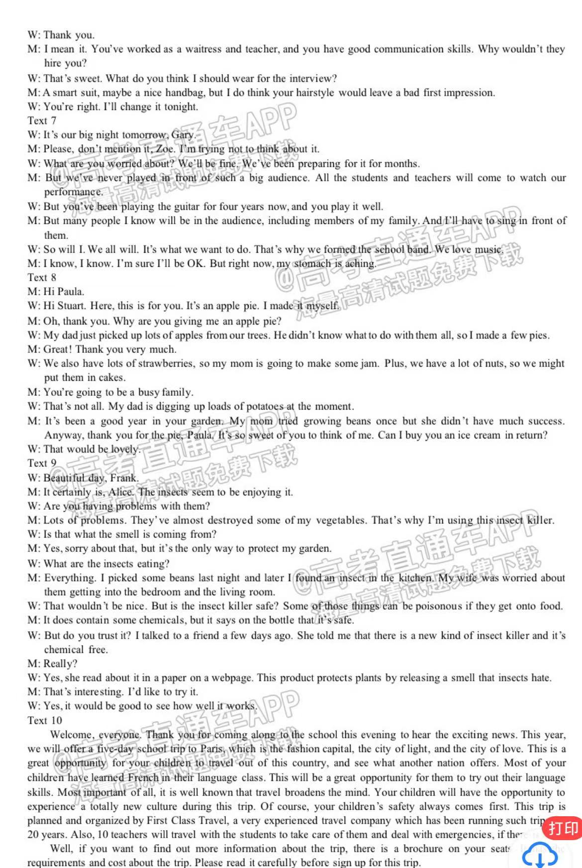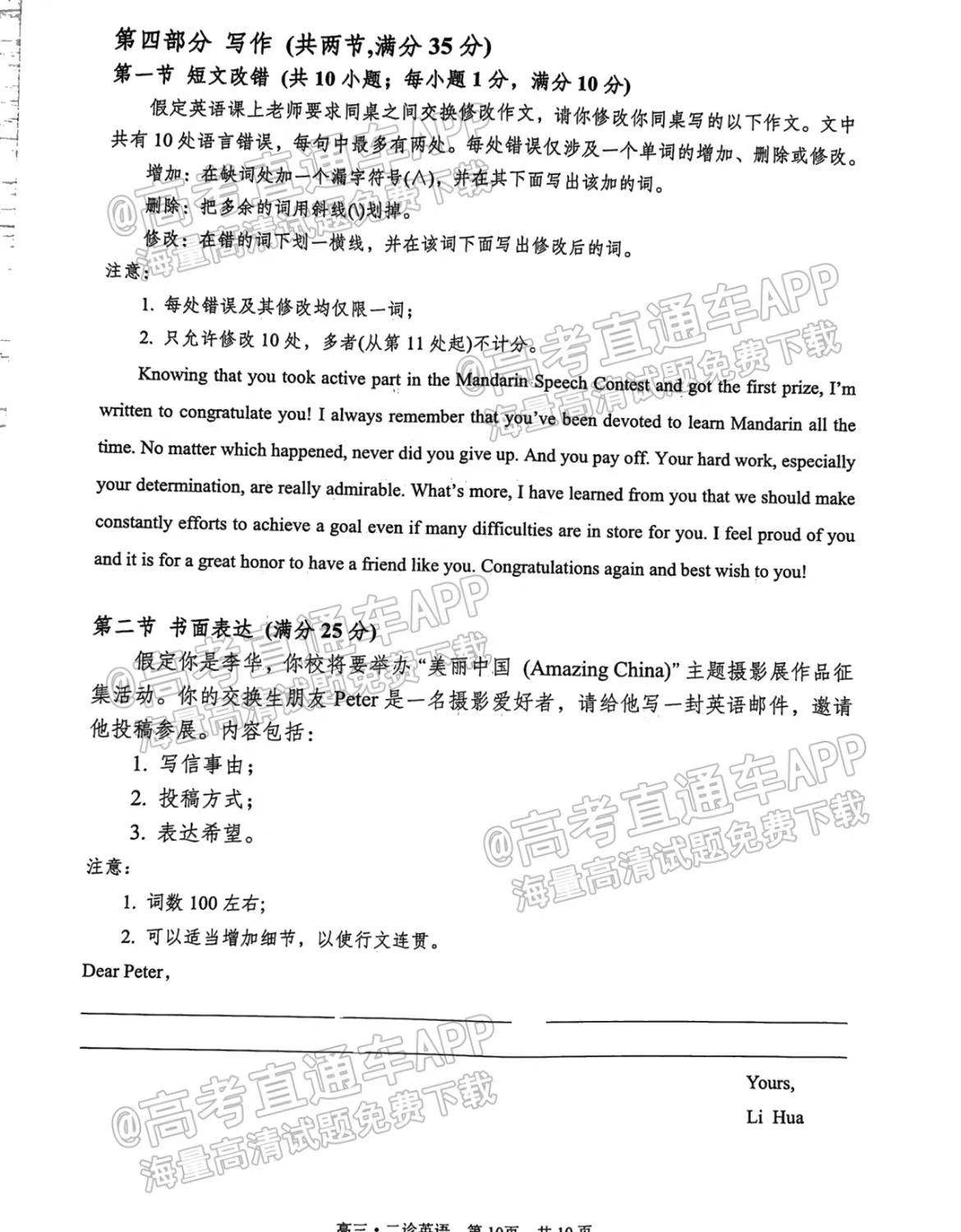 六、四川泸州二诊2023英语答案及试卷