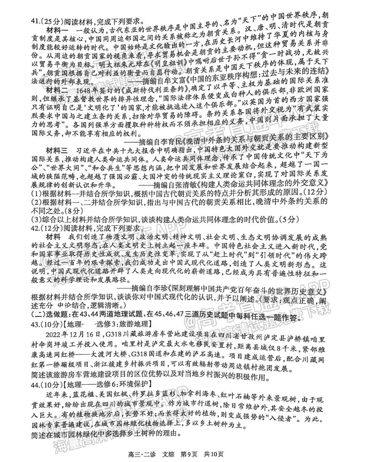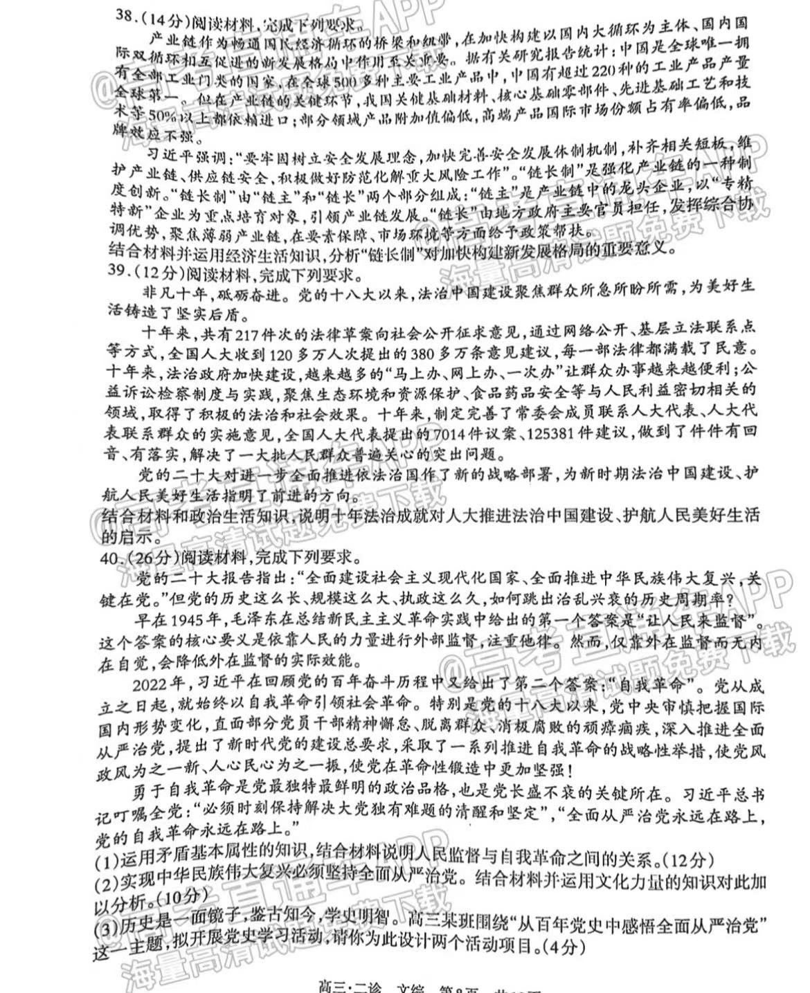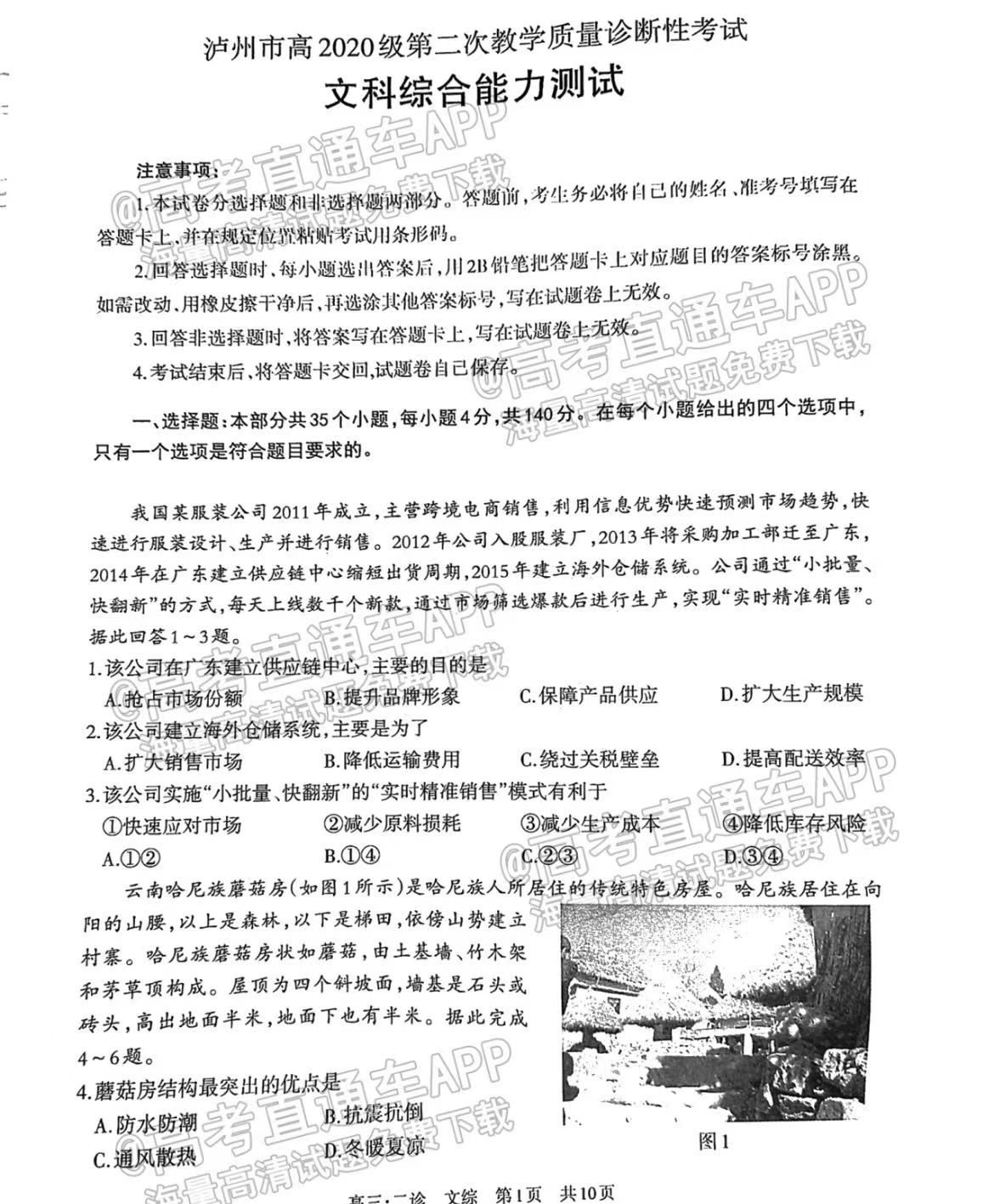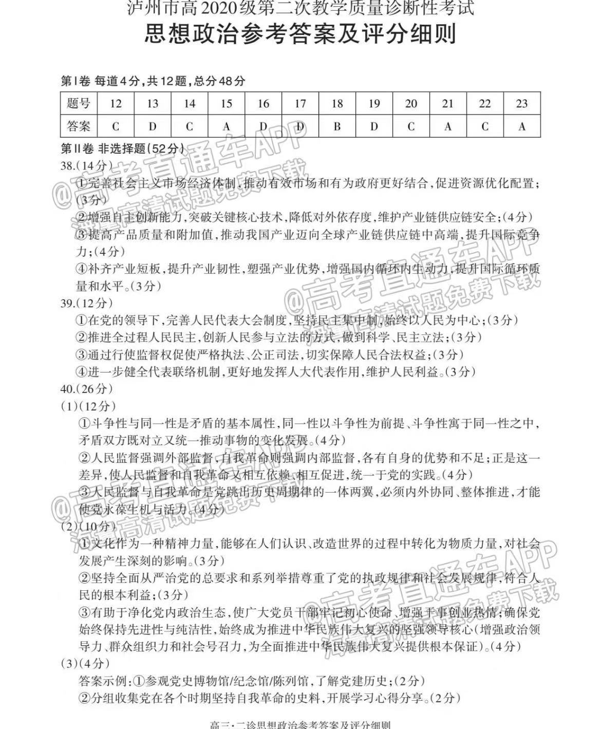四、四川泸州二诊2023文综答案及试卷