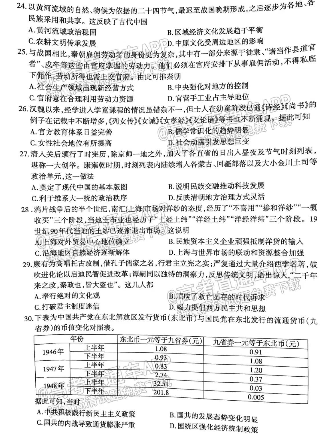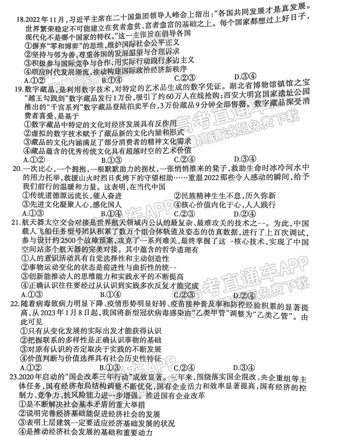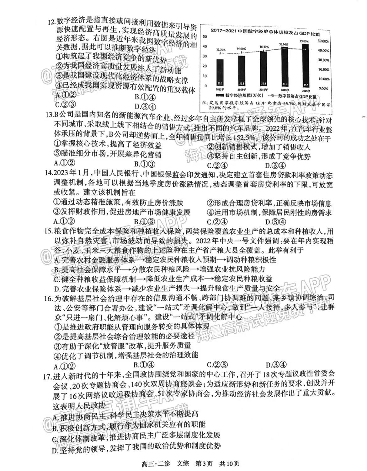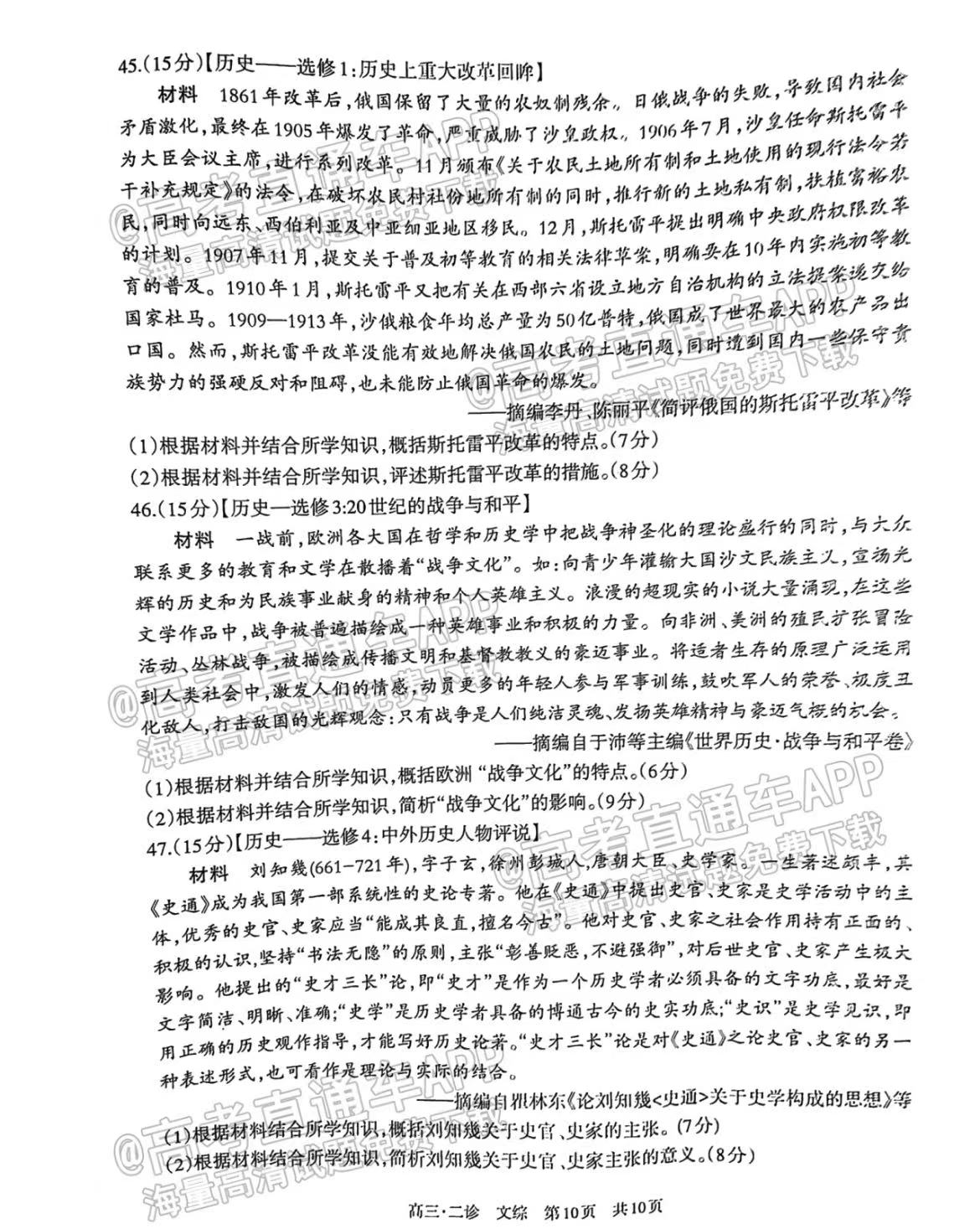 四、四川泸州二诊2023文综答案及试卷