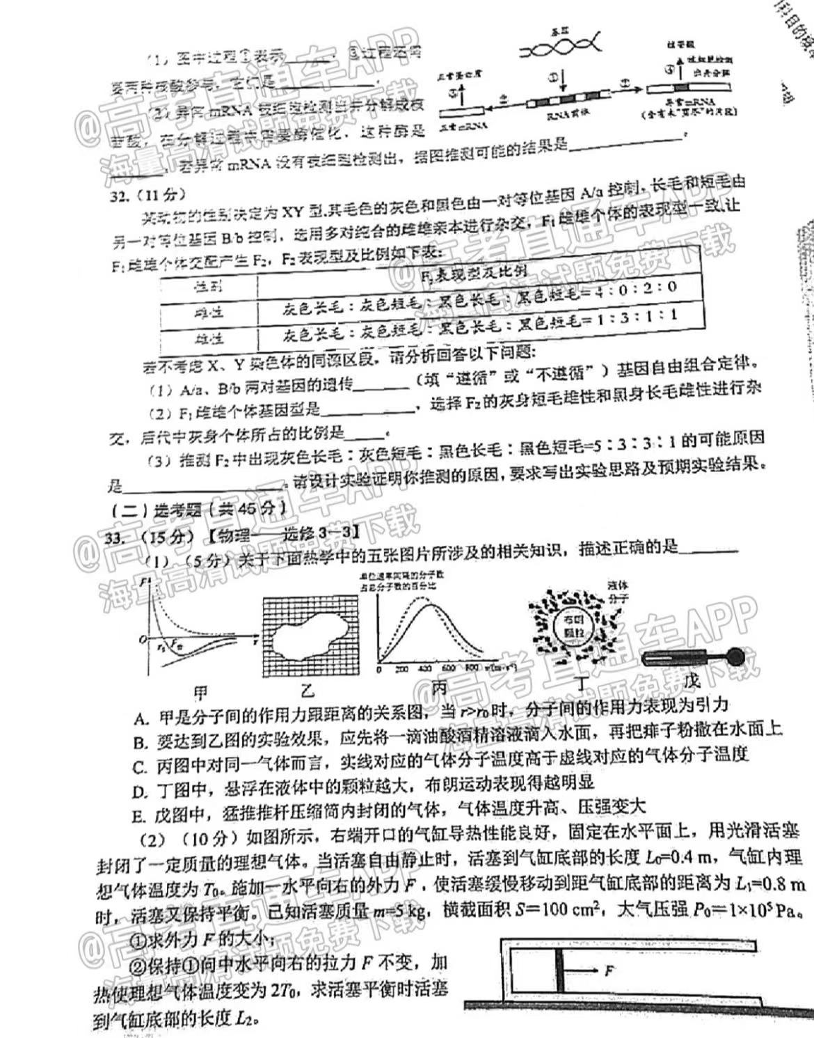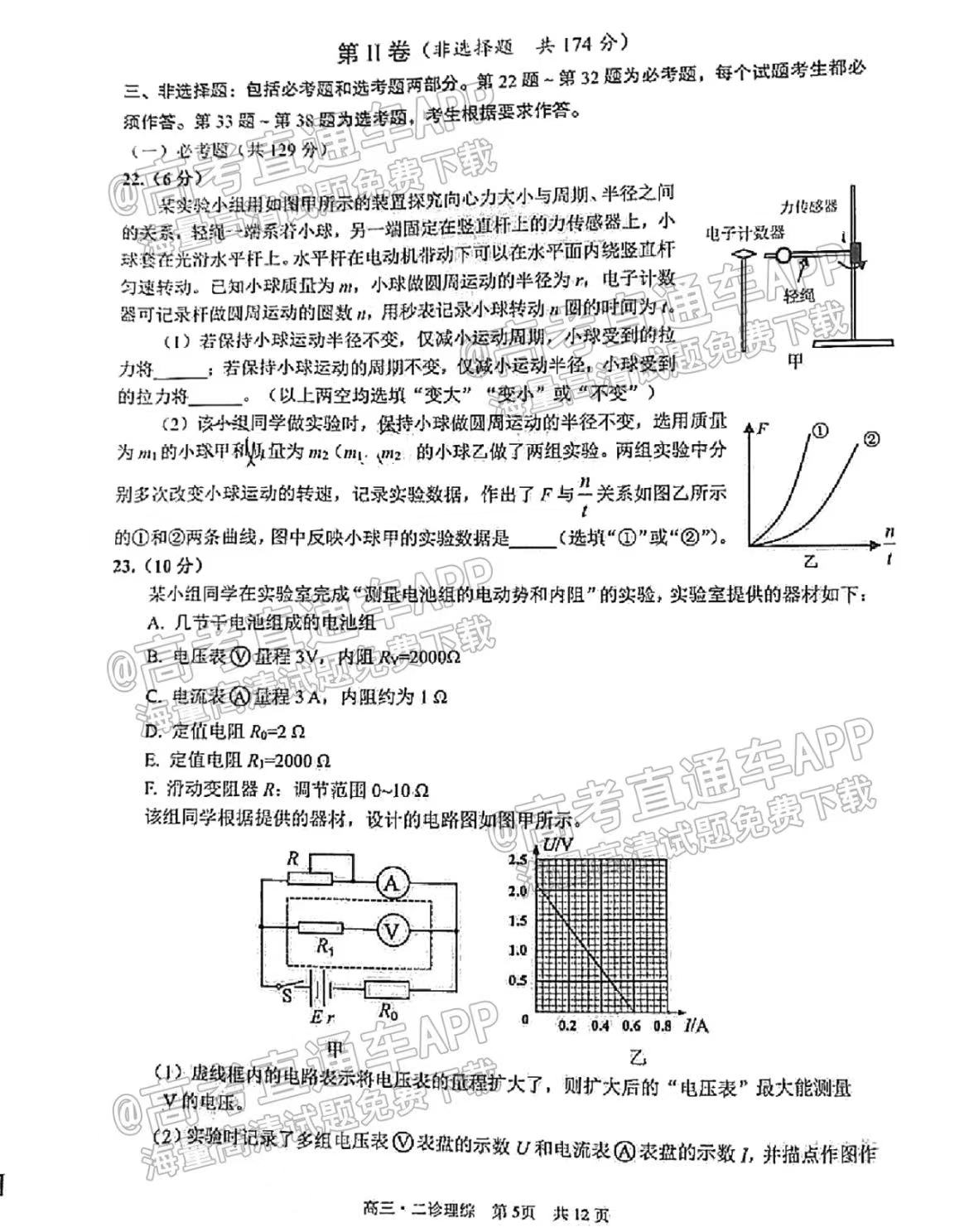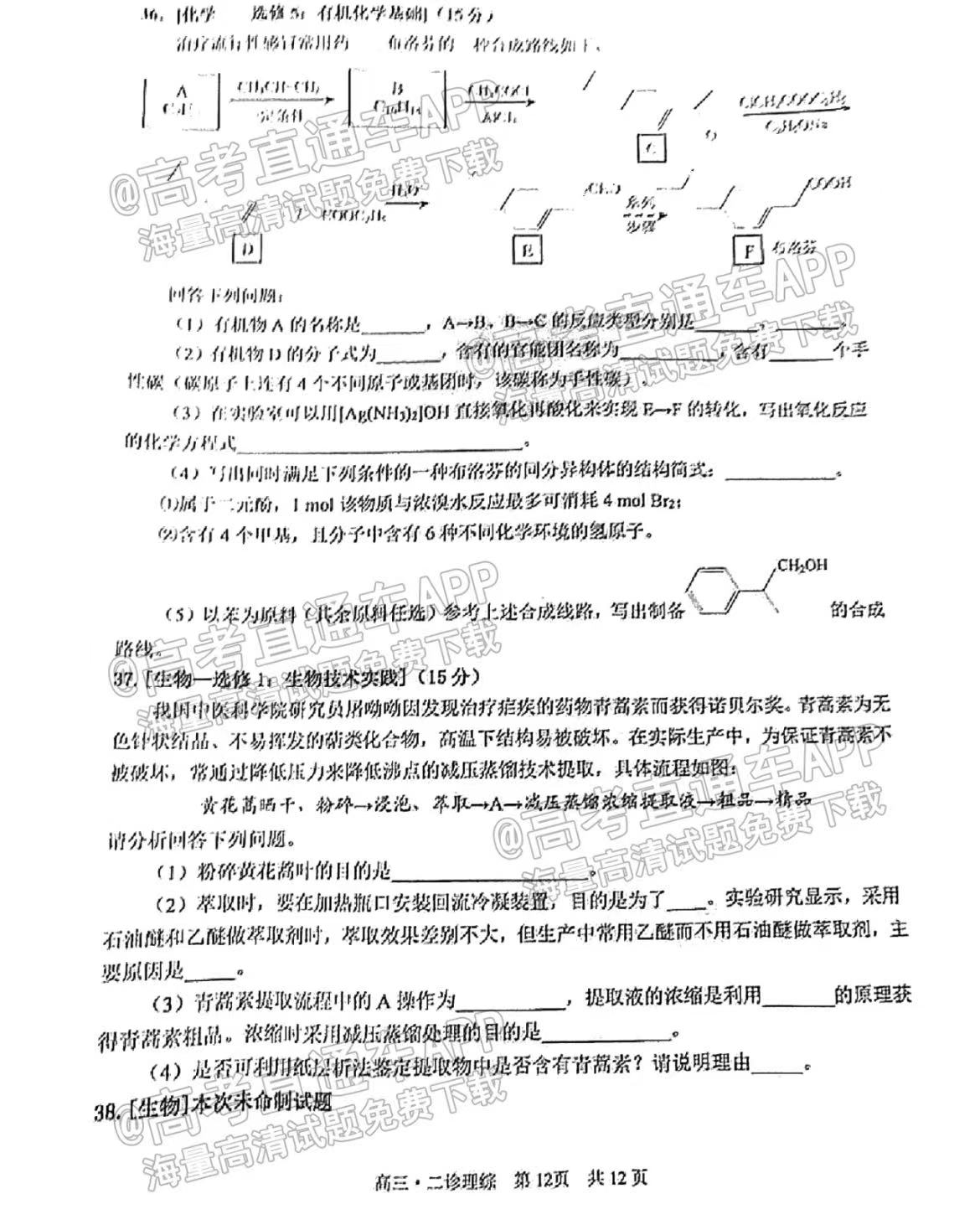 五、四川泸州二诊2023理综答案及试卷