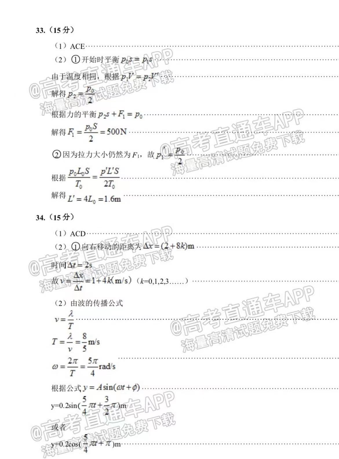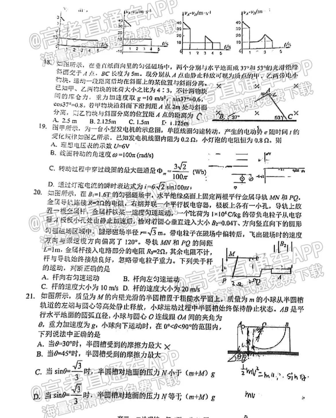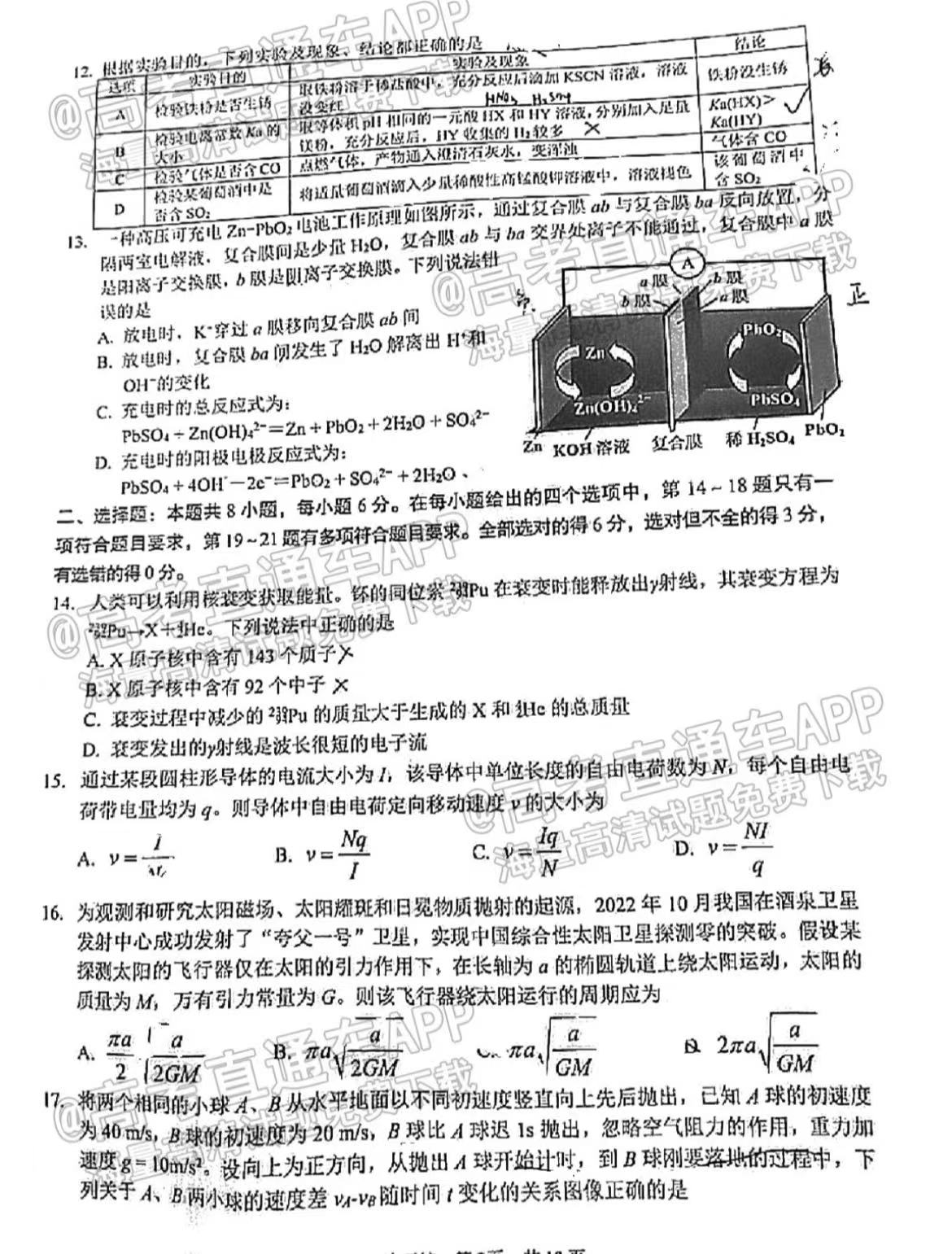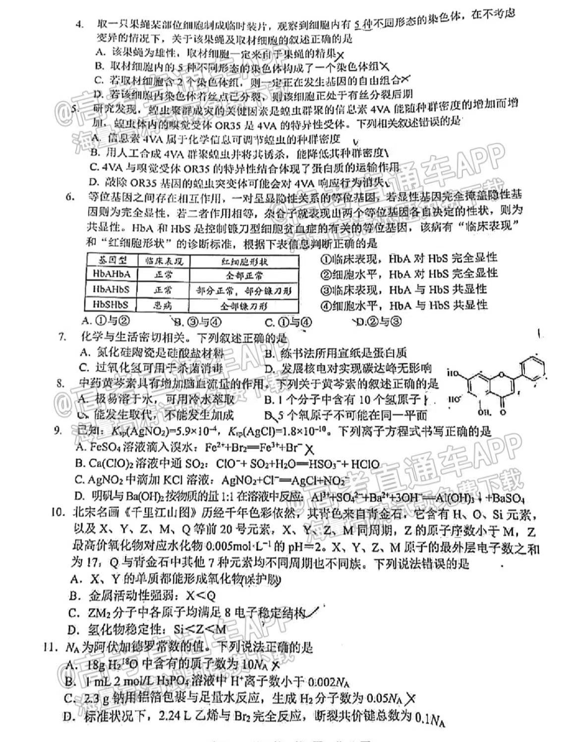 五、四川泸州二诊2023理综答案及试卷