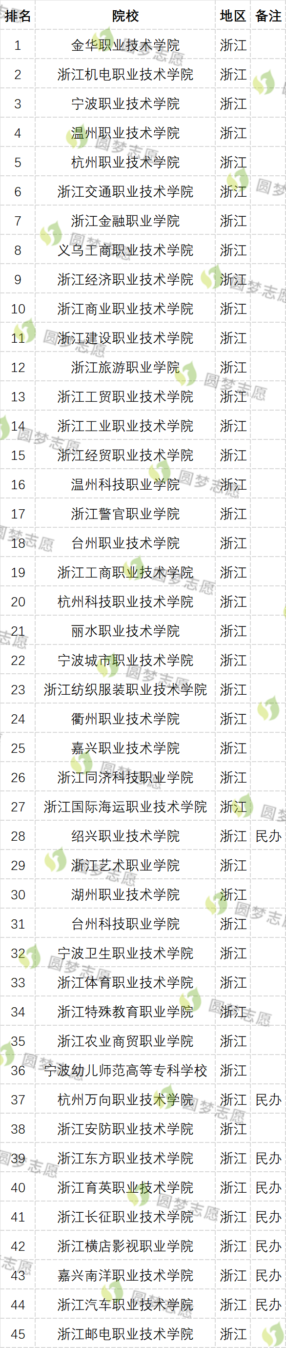 二、浙江专科学校排名最新