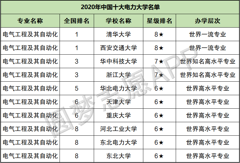 由于校友会暂未公布2021年电力专业大学排名,所以小编整理出了2020年的具体排名情况,供大家参考。