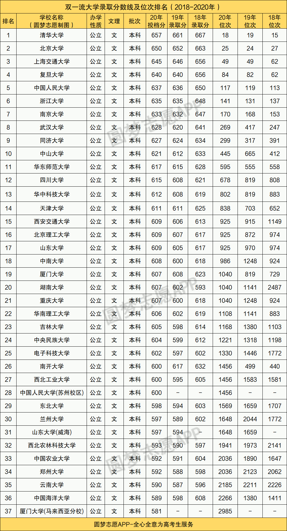 收分最高的是:清华大学,2020年投档分为657分,位次排名18。