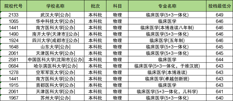 640分能上临床医学专业,比如华中科技大学、南方医科大学、哈尔滨医科大学等,本期将介绍高考中哪些大学的临床医学专业在640多分。
