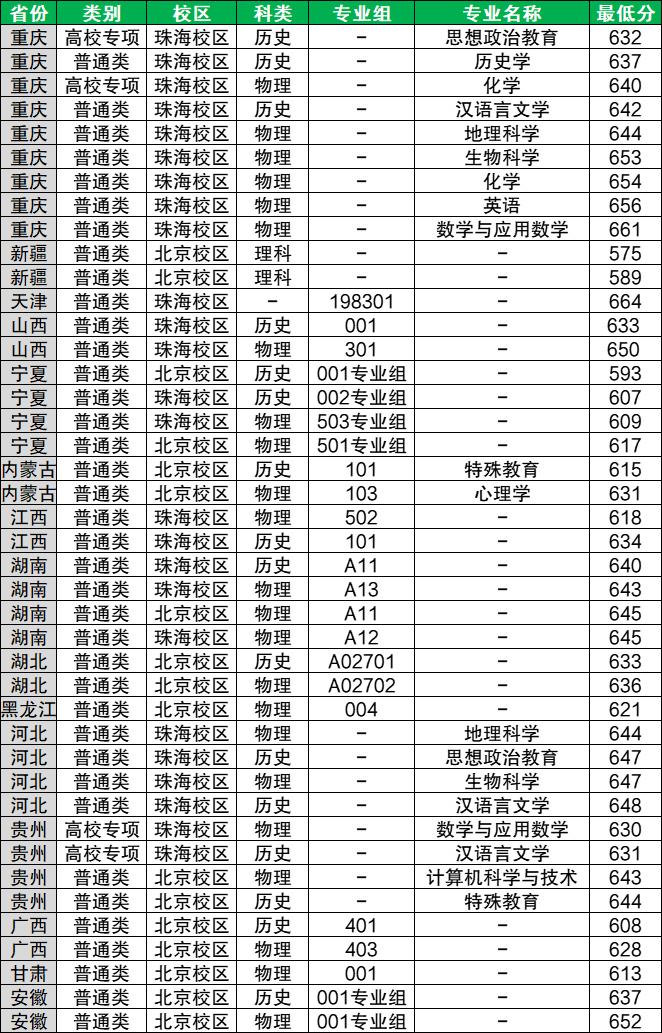 更多省份分数可在下表查阅,大家也可以自行关注各省教育考试院官网或北京师范大学招生官网发布的分数动态: