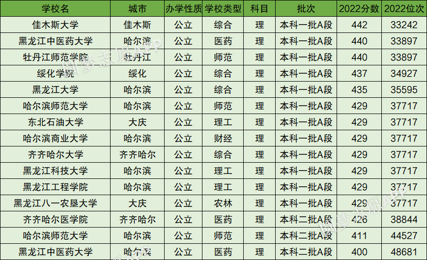 1、佳木斯大学:公立大学,2022年最低分数为442