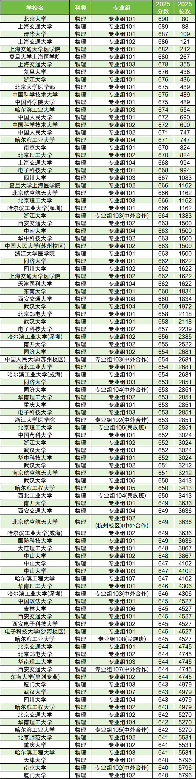 篇幅有限,这里仅展示物理类分数线Top100一览表: