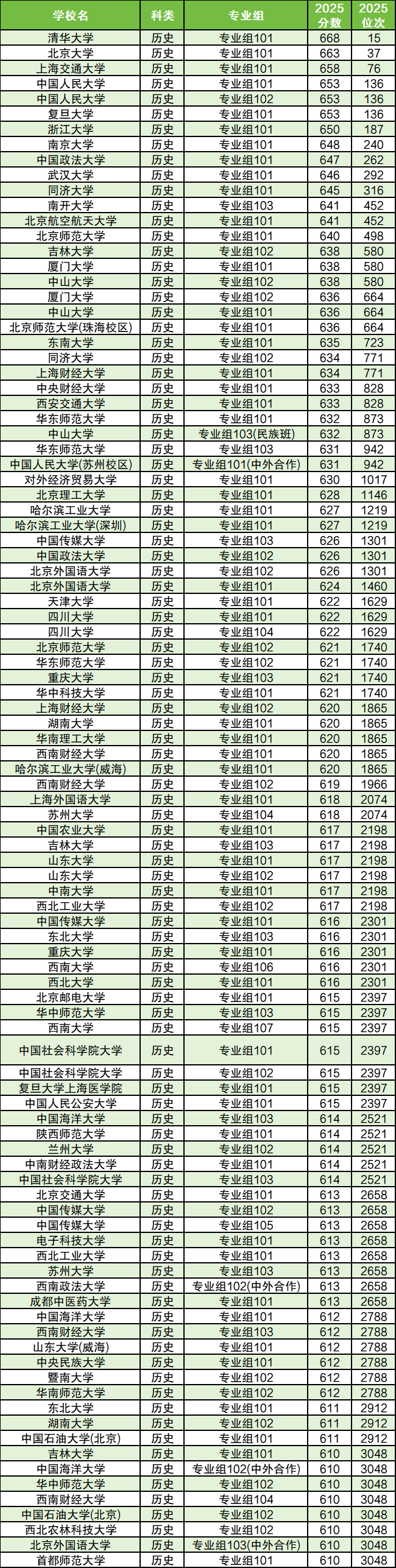 篇幅有限,这里仅展示历史类分数线Top100一览表,更多院校分数线可滑至底部分数框输分查询: