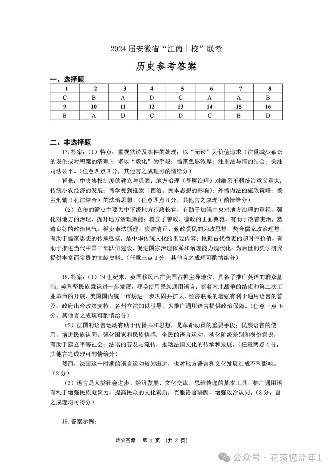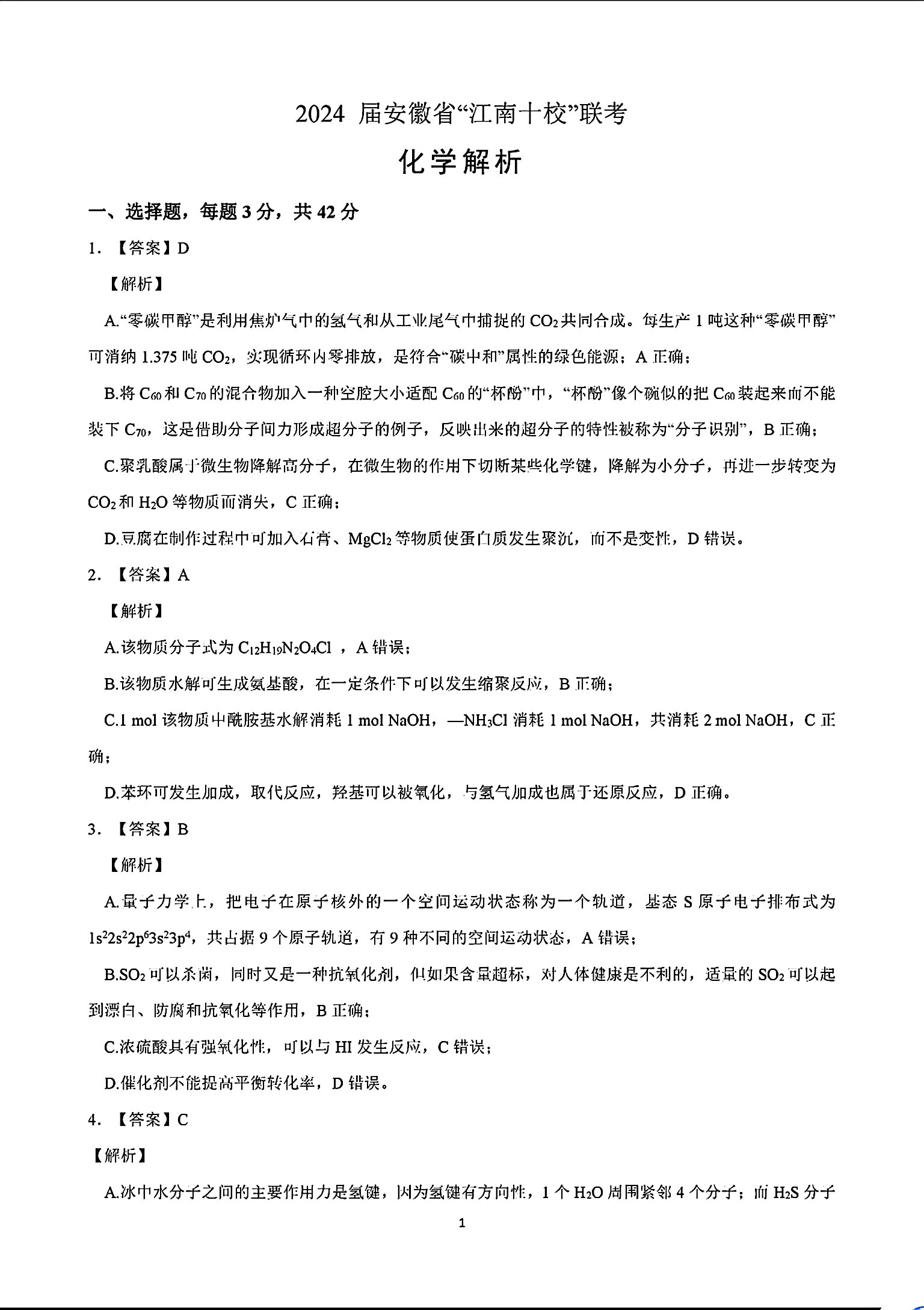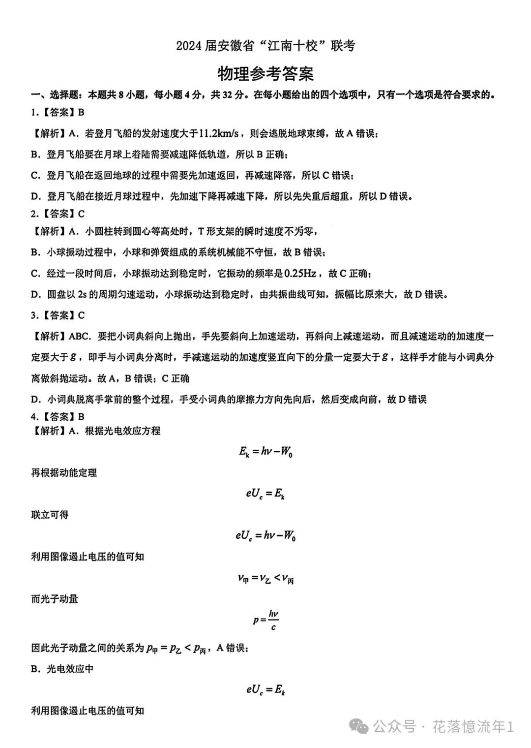 以下为2024江南十校一模3月联考各科试卷及答案解析汇总: