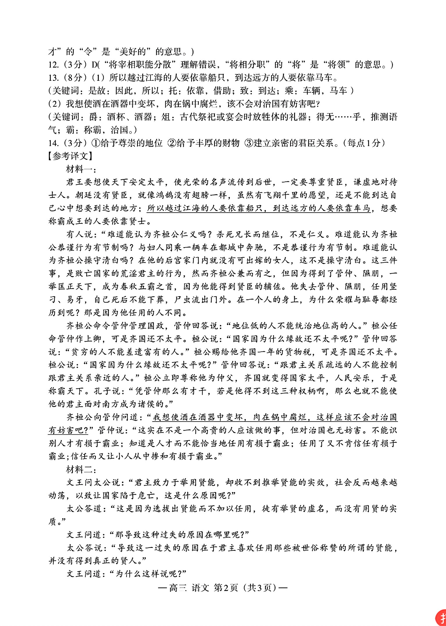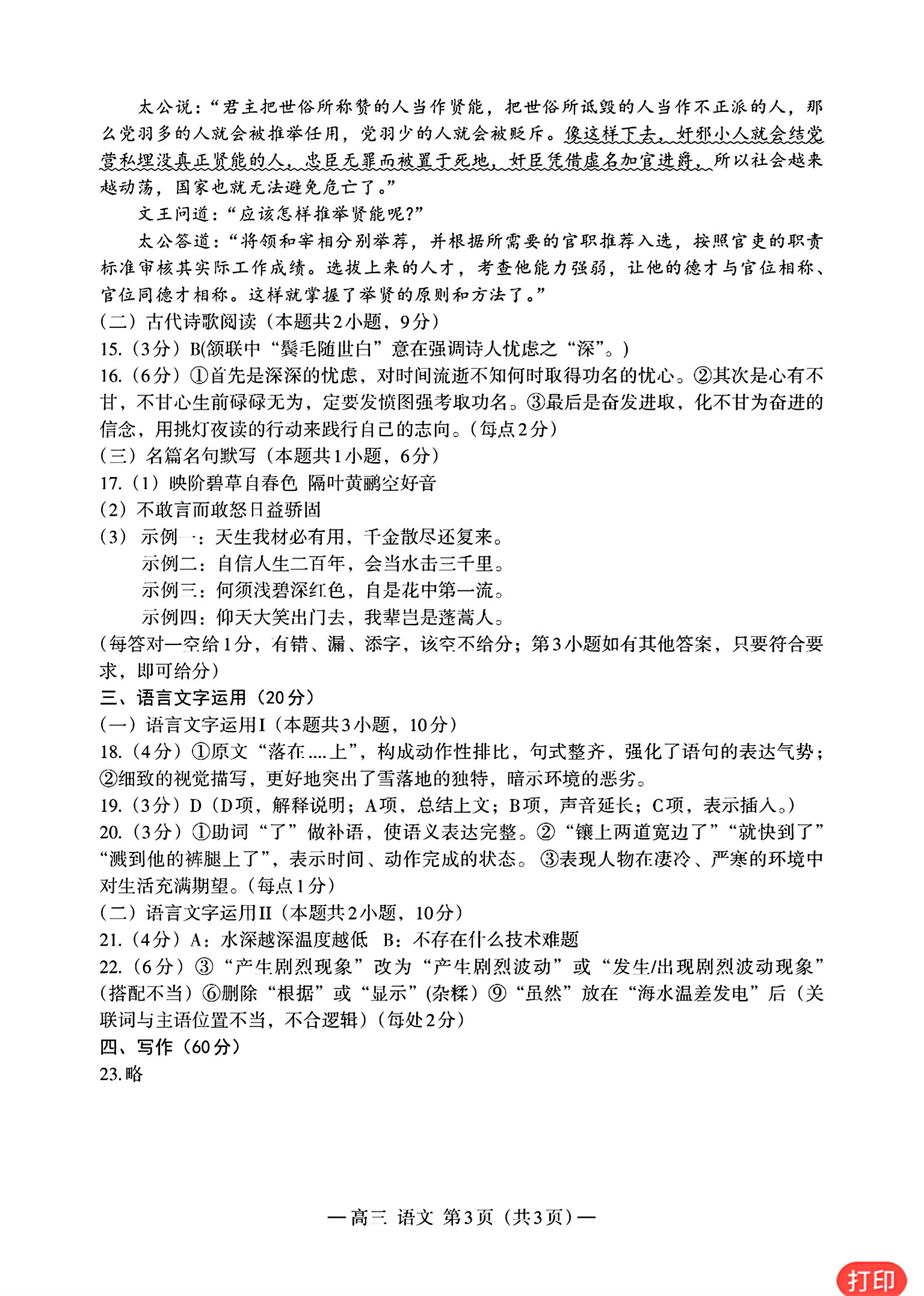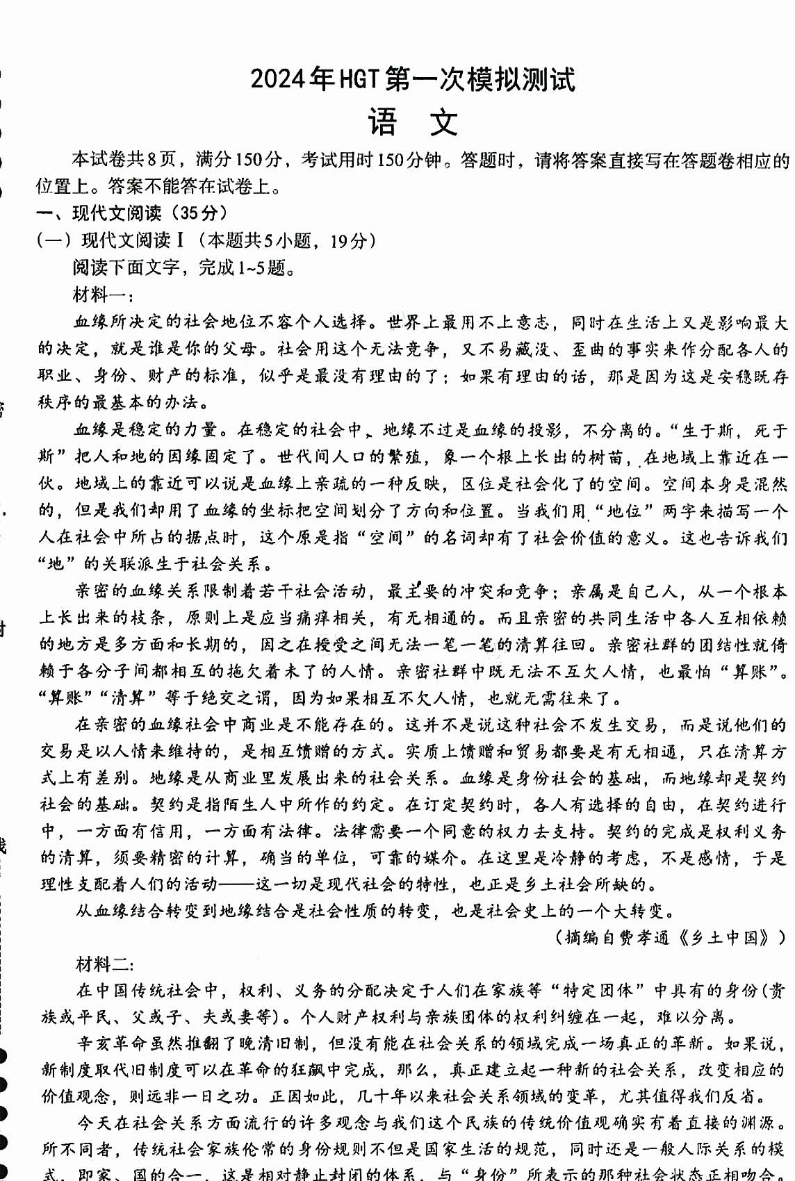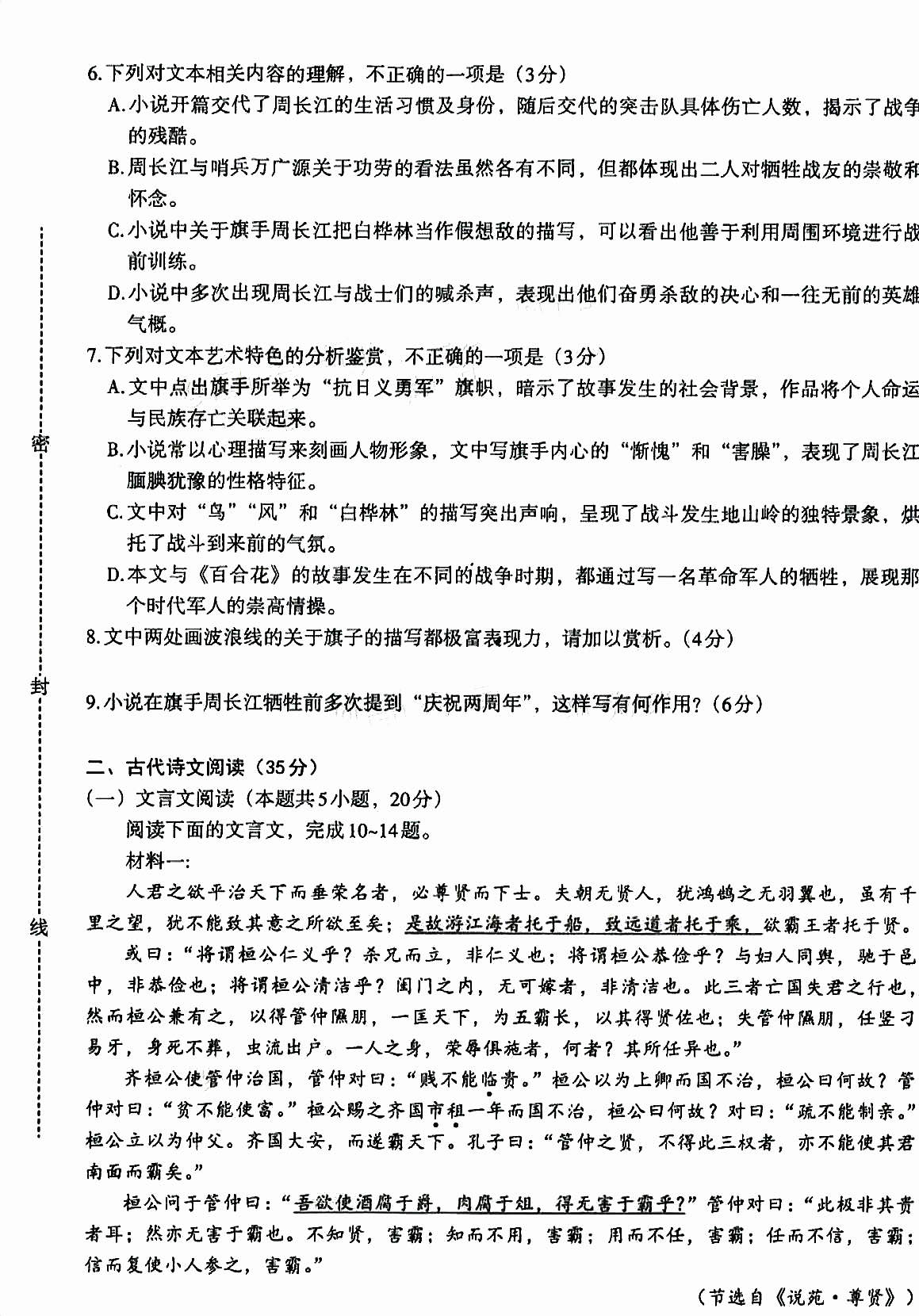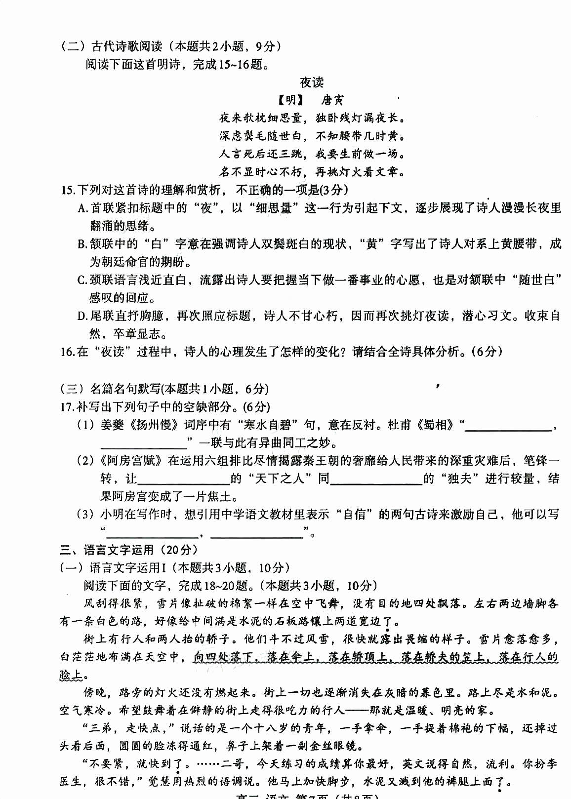 一、2024南昌一模语文试卷答案