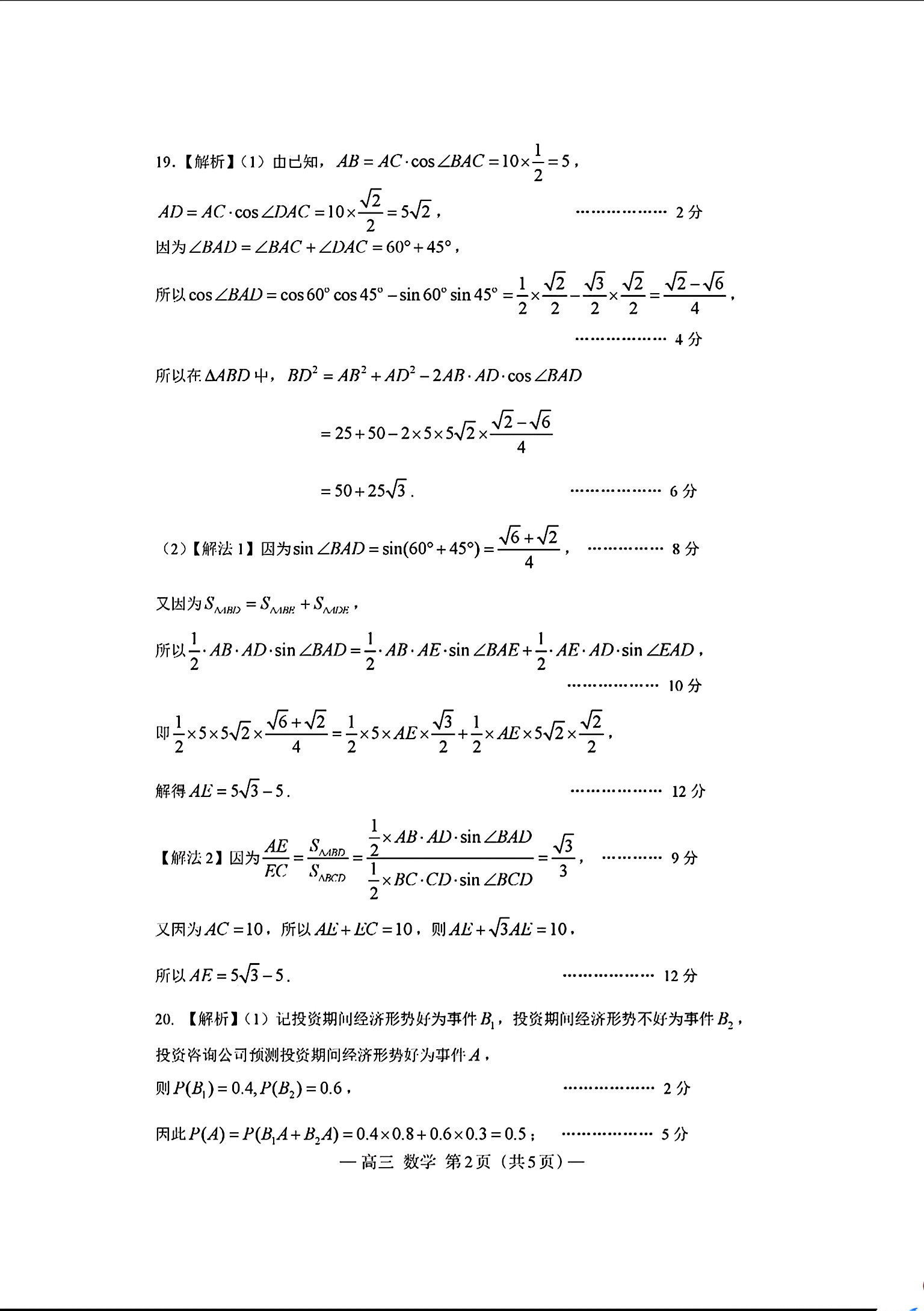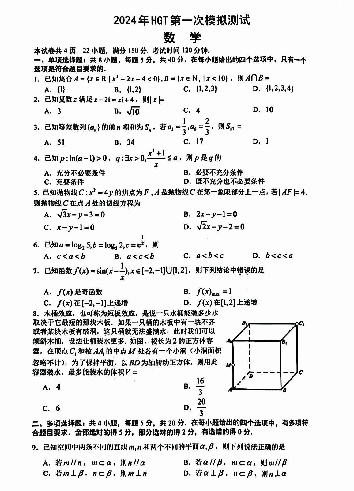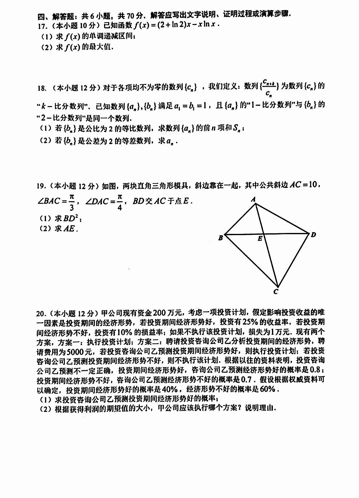 二、2024南昌一模数学试卷答案