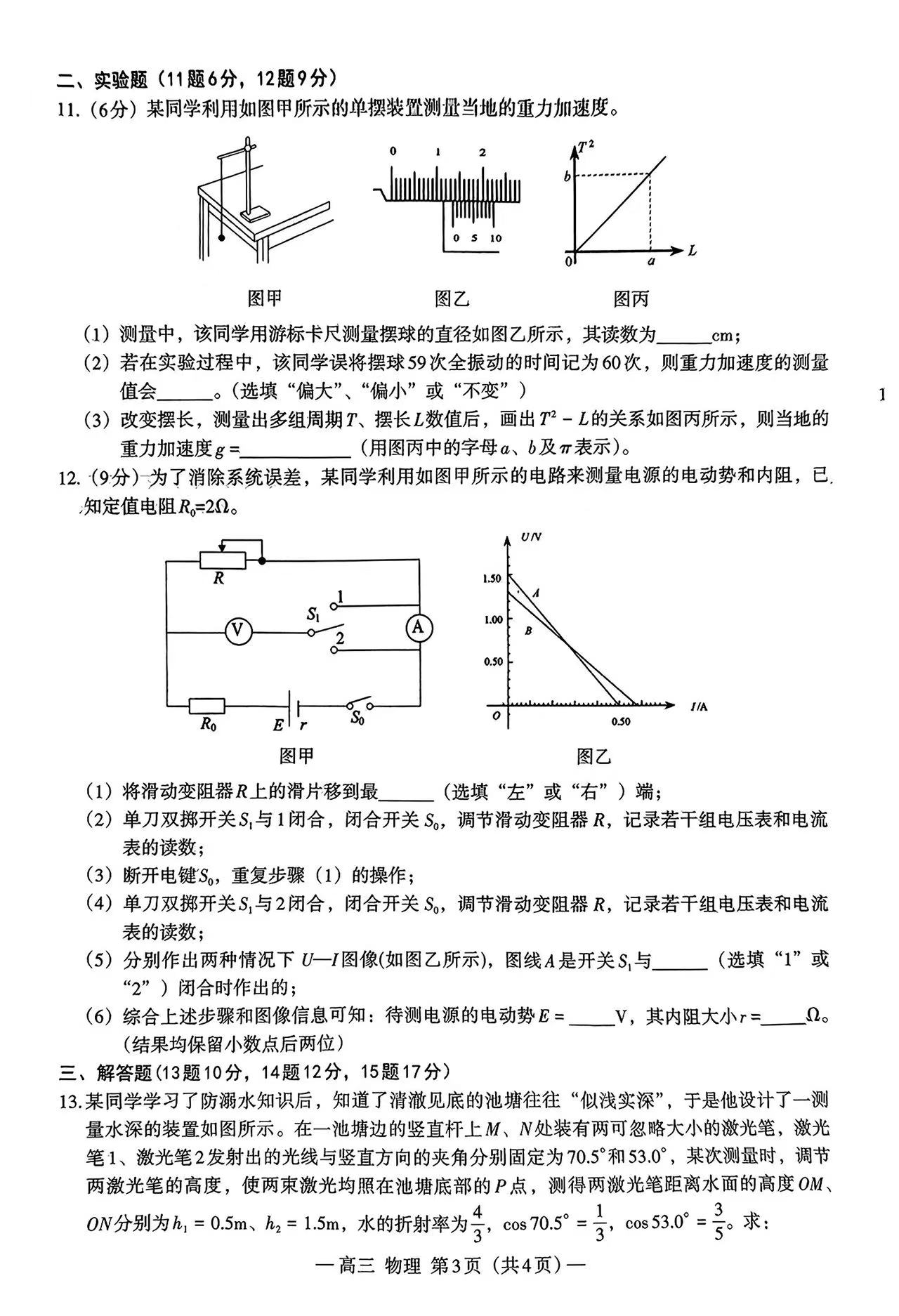 四、2024南昌一模物理试卷答案