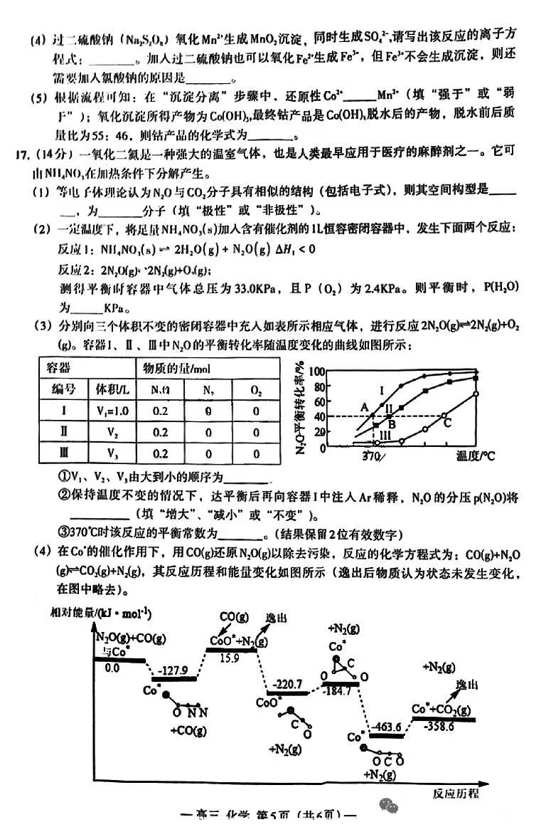 五、2024南昌一模化学试卷答案