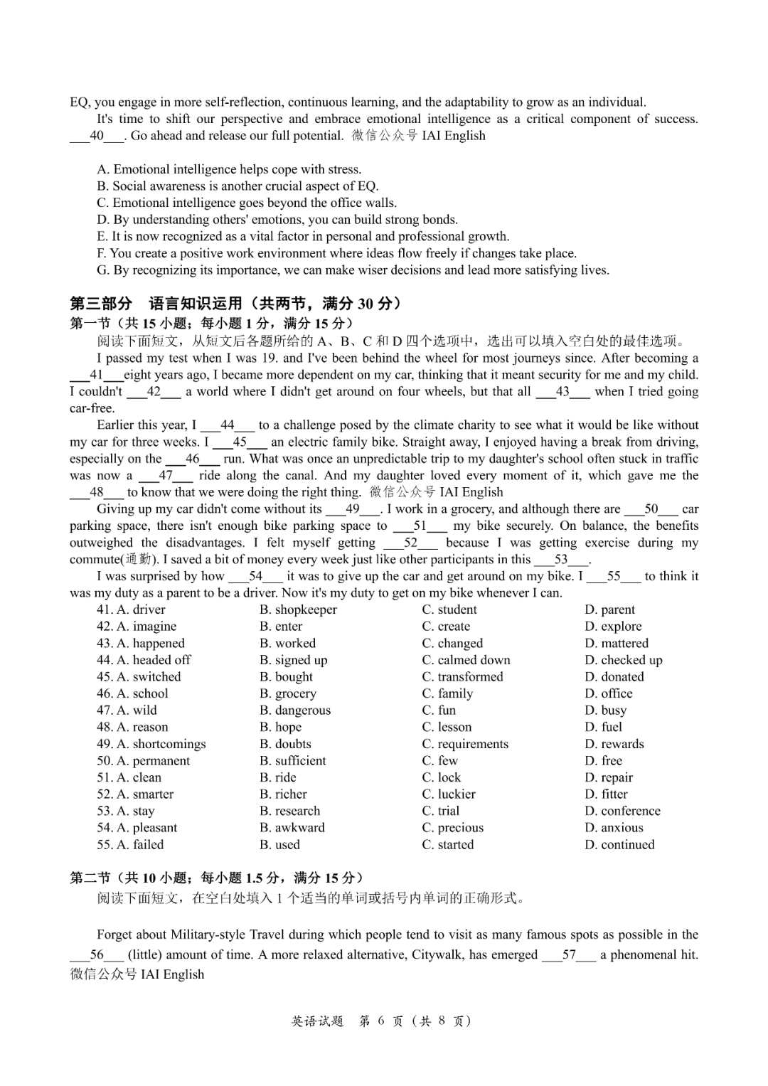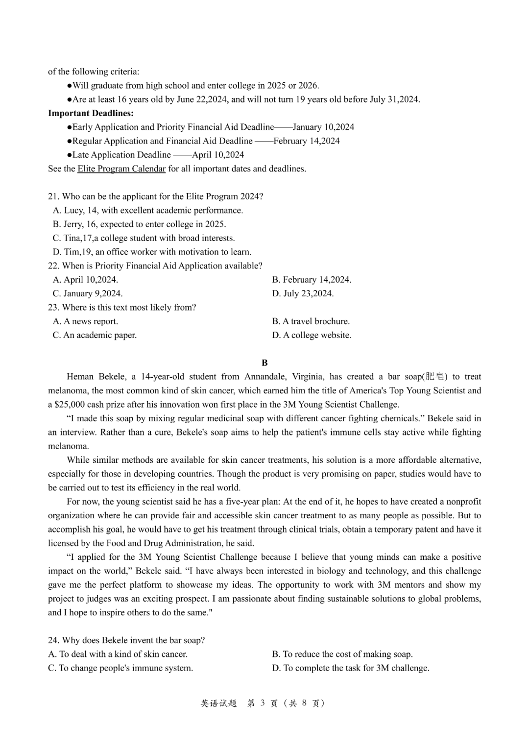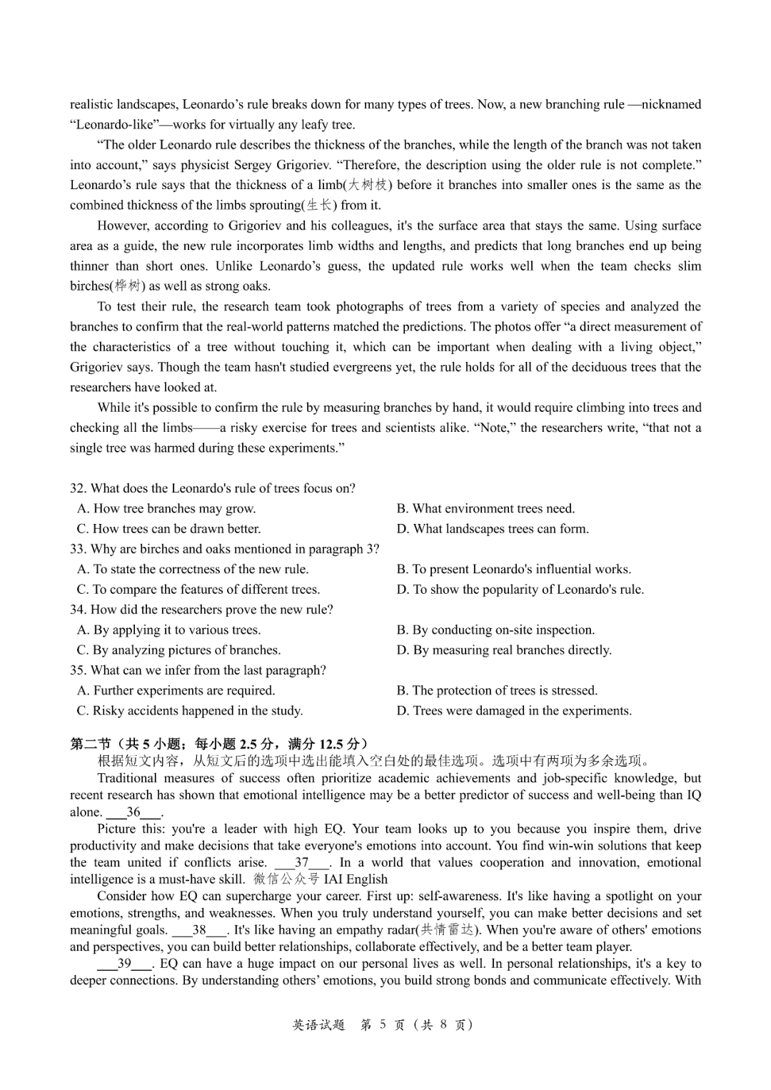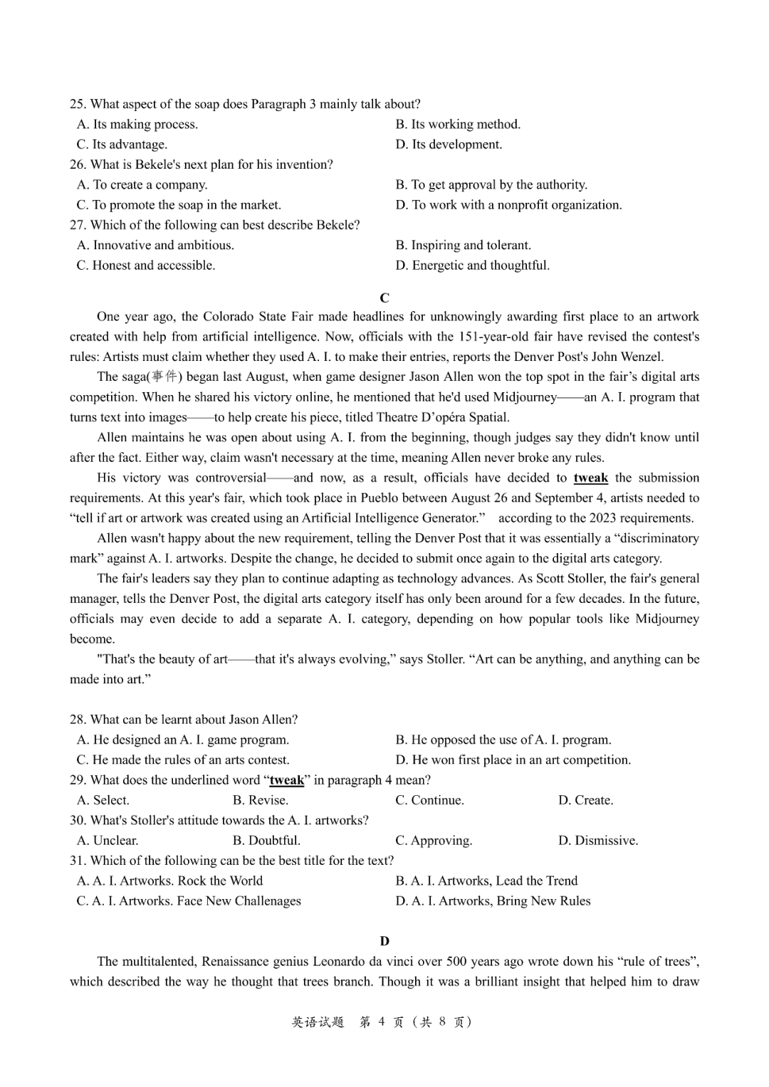 三、2024南昌一模英语试卷答案